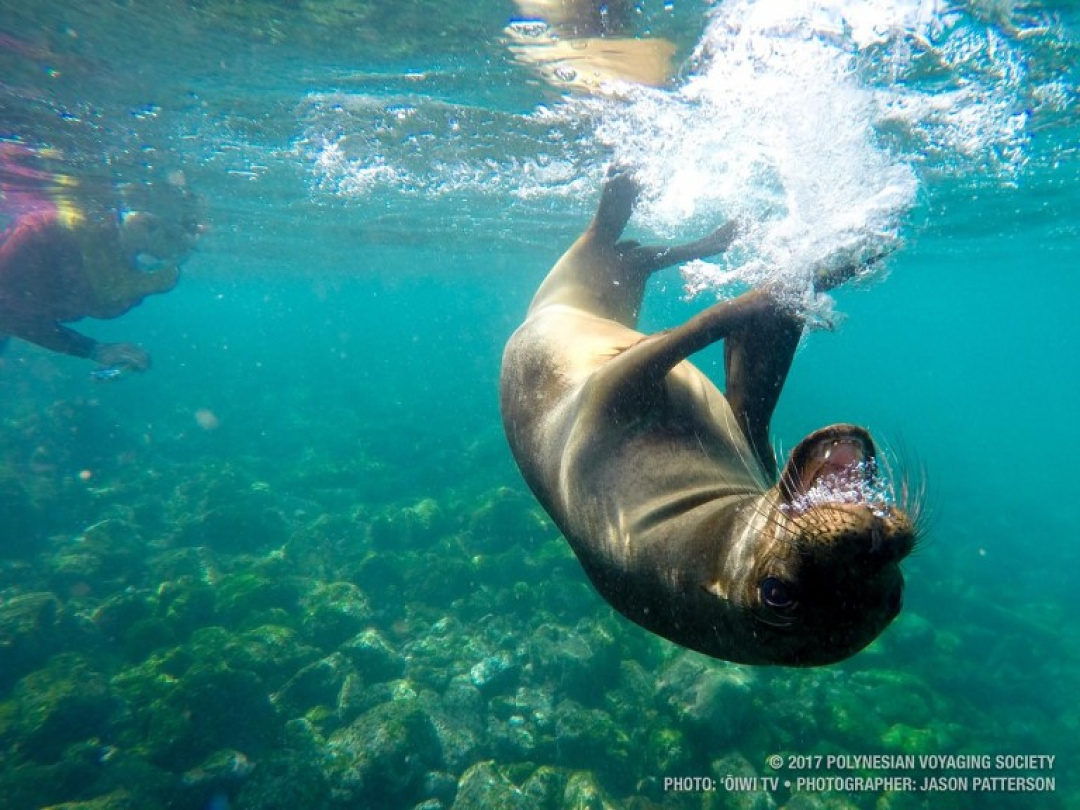 Relationships are natural; completely captivated by this playful adolescent sea lion in the Galápagos.