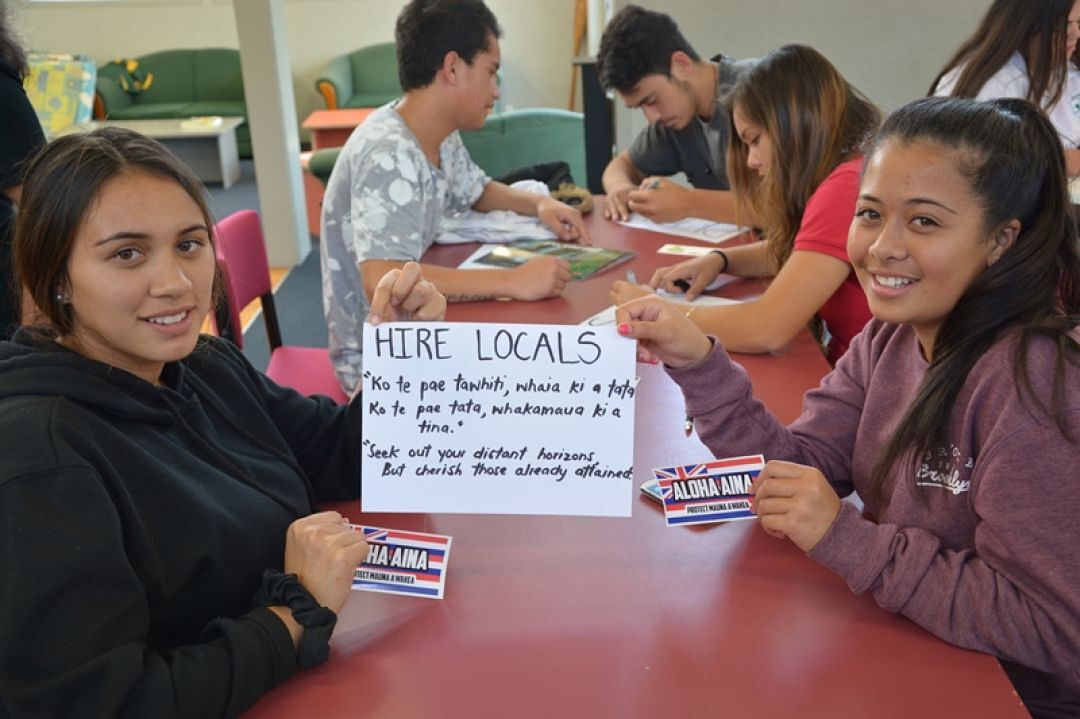 Another highlight was the student cultural exchanges with neighboring Māori community schools, where our Hawaiian youth led discussions and activities focused around the Indigenous Youth Declaration, with the goal of learning from their Māori peers about the issues that are most critical in their communities. These educational exchanges affirmed for our students and staff that, as indigenous people, our passions, successes, challenges and aspirations are one in the same.