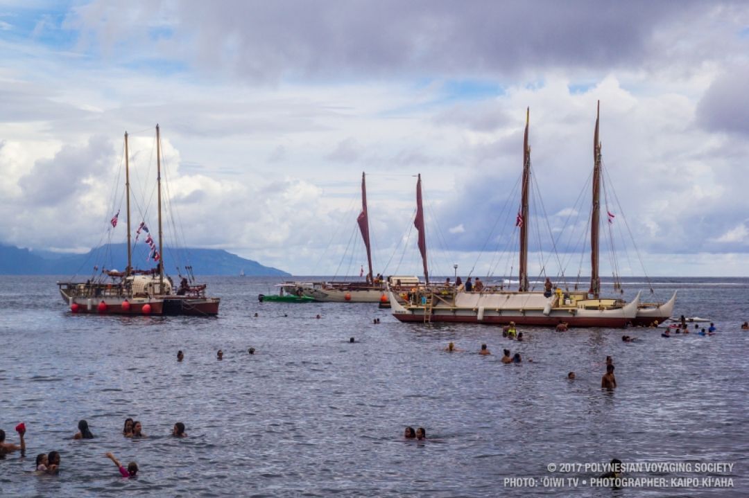 Hōkūle‘a, Hikianalia, and their crews were welcomed by the Mahina community in Tahiti.