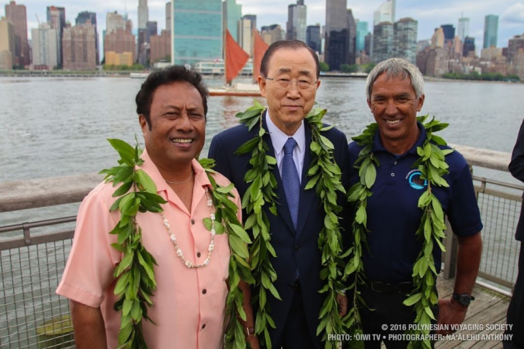 PVS president Nainoa Thompson (right) with UN Secretary-General Ban Ki-moon (center) and Palau President Tommy E. Remengesau Jr.