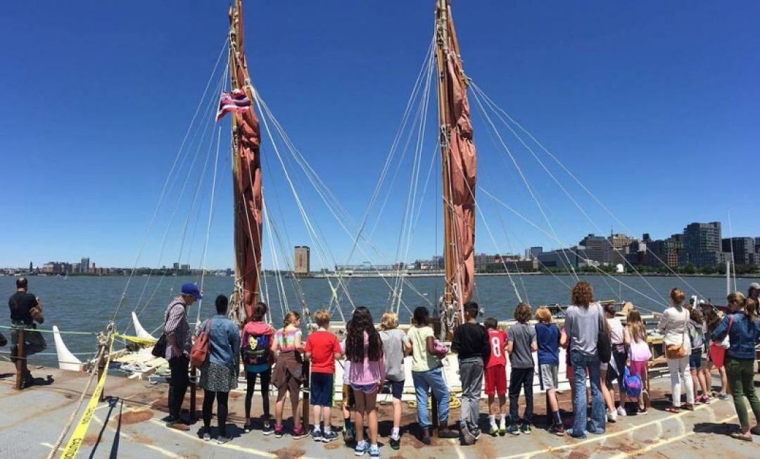 Education outreach is a primary component of the worldwide voyage. Here, New York City students learn more about the Hōkūleʻa.