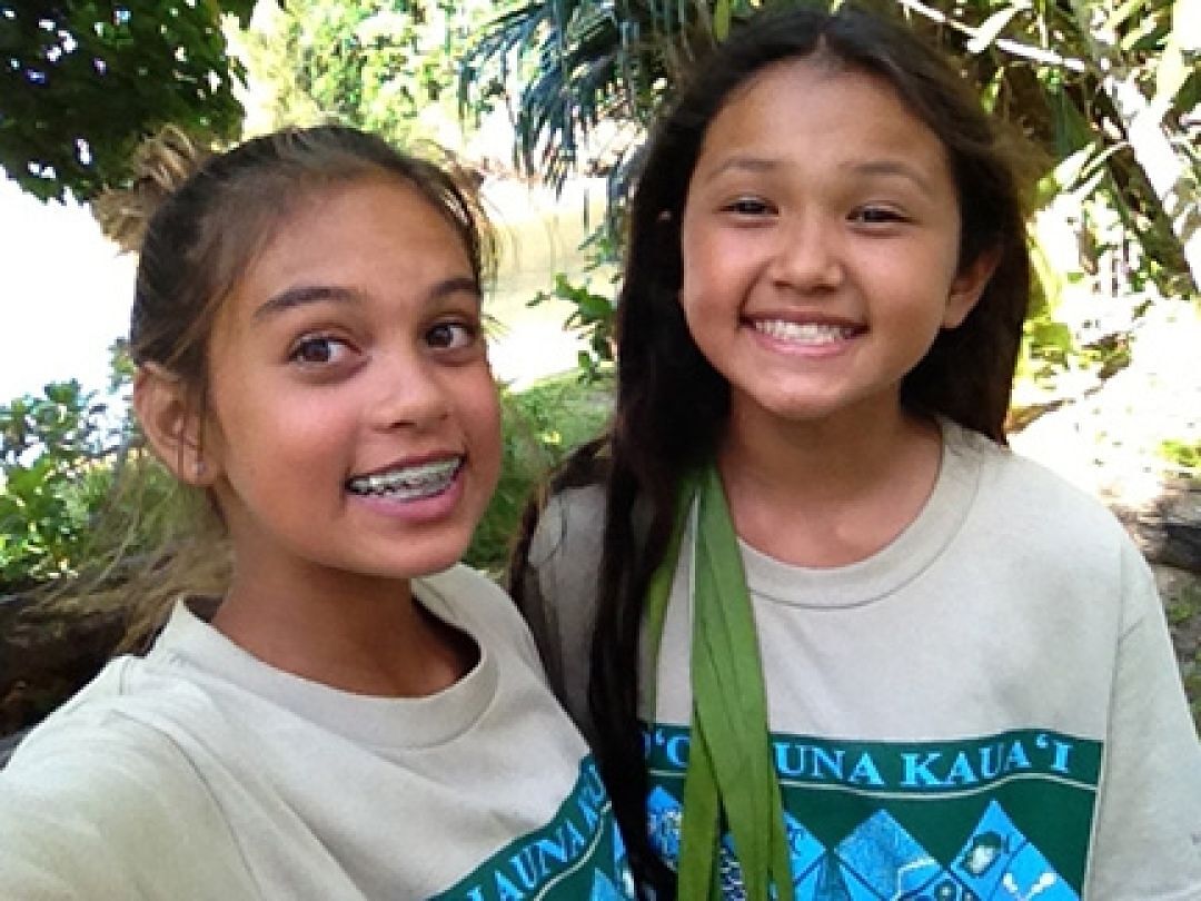 Hoʻolauna Waipā keiki smile during a work day project at Waipā.