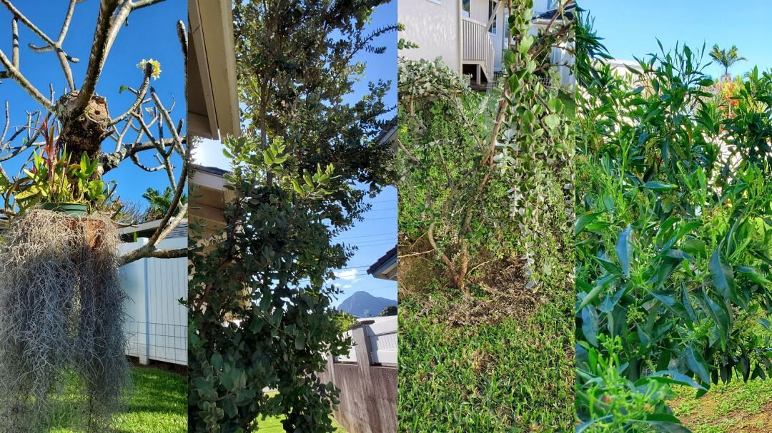 My ʻohana is blessed to live in fertile Kāneʻohe, Windward Oʻahu. Our home is a multigenerational home that was the home of my wife’s paternal grandparents and where her father grew up. My father-in-law is the eldest member of our ʻohana and our landlord here today. He is very meticulous in his way of cleaning and tending to his yard. He mows his grass weekly and rakes it twice a day! He only allows for a few special plants to grow in his garden, surrounding our home. One tall ʻōhiʻa lehua tree and one old plumeria tree planted by his mama, two lehua mamo hedges and an ʻaʻaliʻi bush gifted by his moʻopuna and some torch gingers and lāʻī that are cut occasionally to decorate family graves. He visits those gravesites of his parents and his son weekly to tend and care for them too. Nonetheless, he is like so many of our kūpuna who have the discipline and patience to tend to such matters that might be trivial to today’s generation, but a norm and priority to former generations.