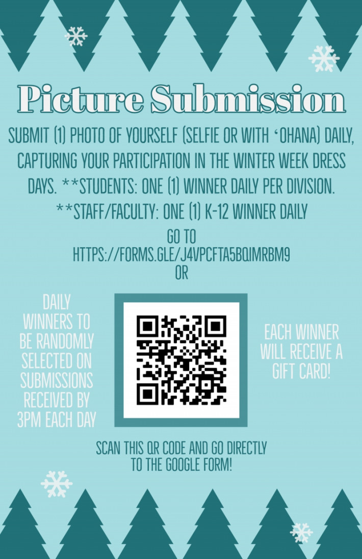 The week of November 30, dress up in special themed attire for each day during the week. You can even win prizes by submitting photos of your outfit. Encourage the entire ʻohana to join in the celebration.