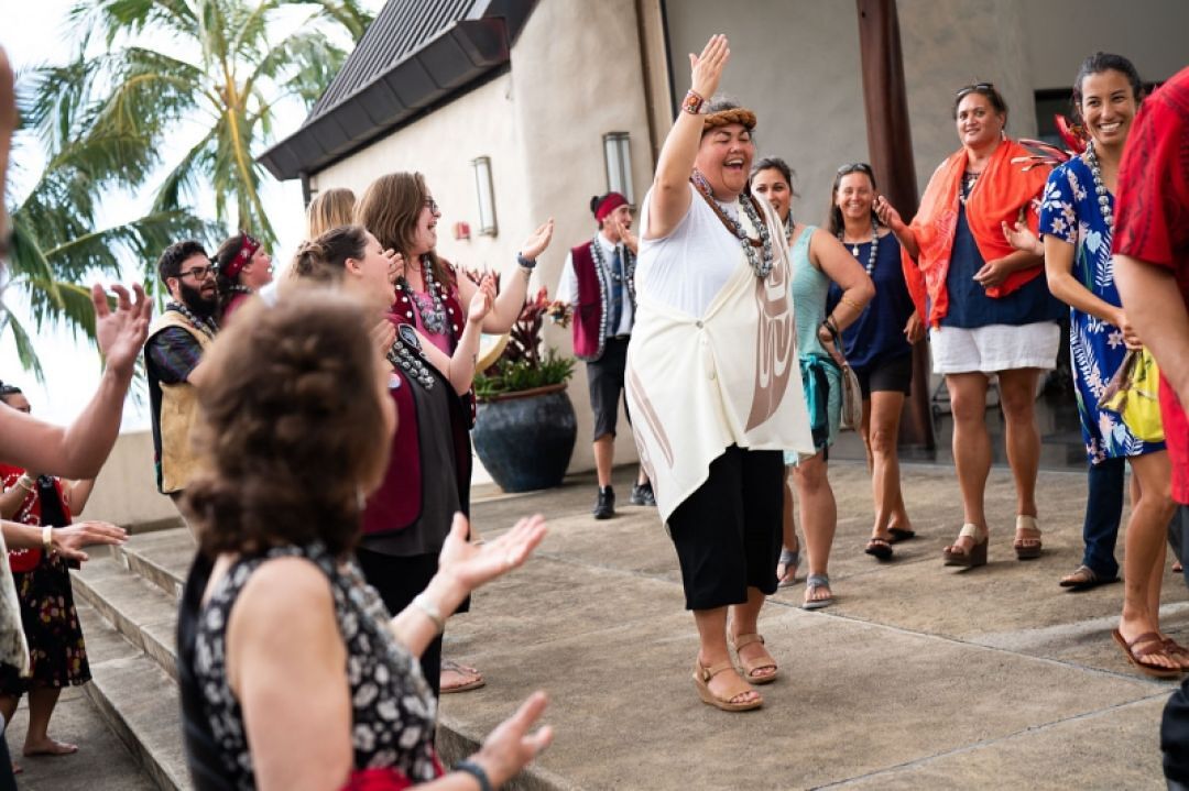 First Alaskans Institute President and CEO La quen náay Liz Medicine Crow at the 2019 Hoʻoilina Conference at the Kaʻiwakīloumoku Hawaiian Cultural Center, hosted by the ʻAha Moananuiākea Pacific Consortium.