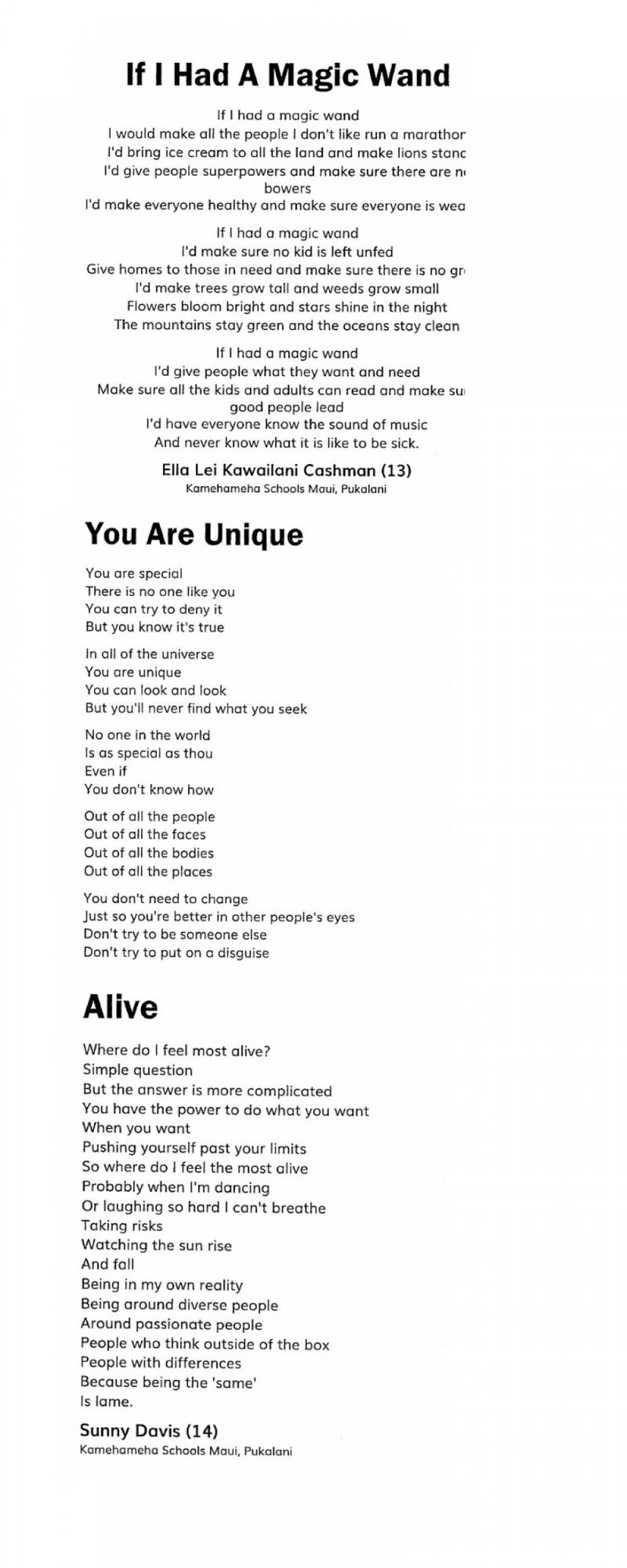 Established in 1991 in Great Britain, the poetry collection features student poets from all over the world. And KS Maui has the most poets represented from a single school.