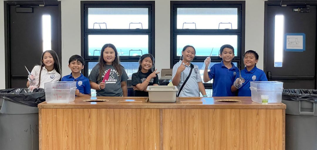 It all started with one pound of worms. Two years ago, a vermicomposting project in Kumu Naomi Helenihi-Aweau’s fourth grade class taught haumāna that food waste from the dining hall could be used - with the help of the worms - to create rich soil for planting. Vermicomposting helped divert some waste from going to the landfill, but the larger problem remained: 22,000 pounds of food (last year’s measurement) was being wasted. Now, that pound of worms has turned into 50 pounds - and the project has expanded accordingly, to involve the entire Kula Ha‘aha‘a. Kumu work with haumāna on their awareness of food consumption, teaching them to be more mindful and change their wasteful behavior. So far this school year, they've cut their food waste in half.