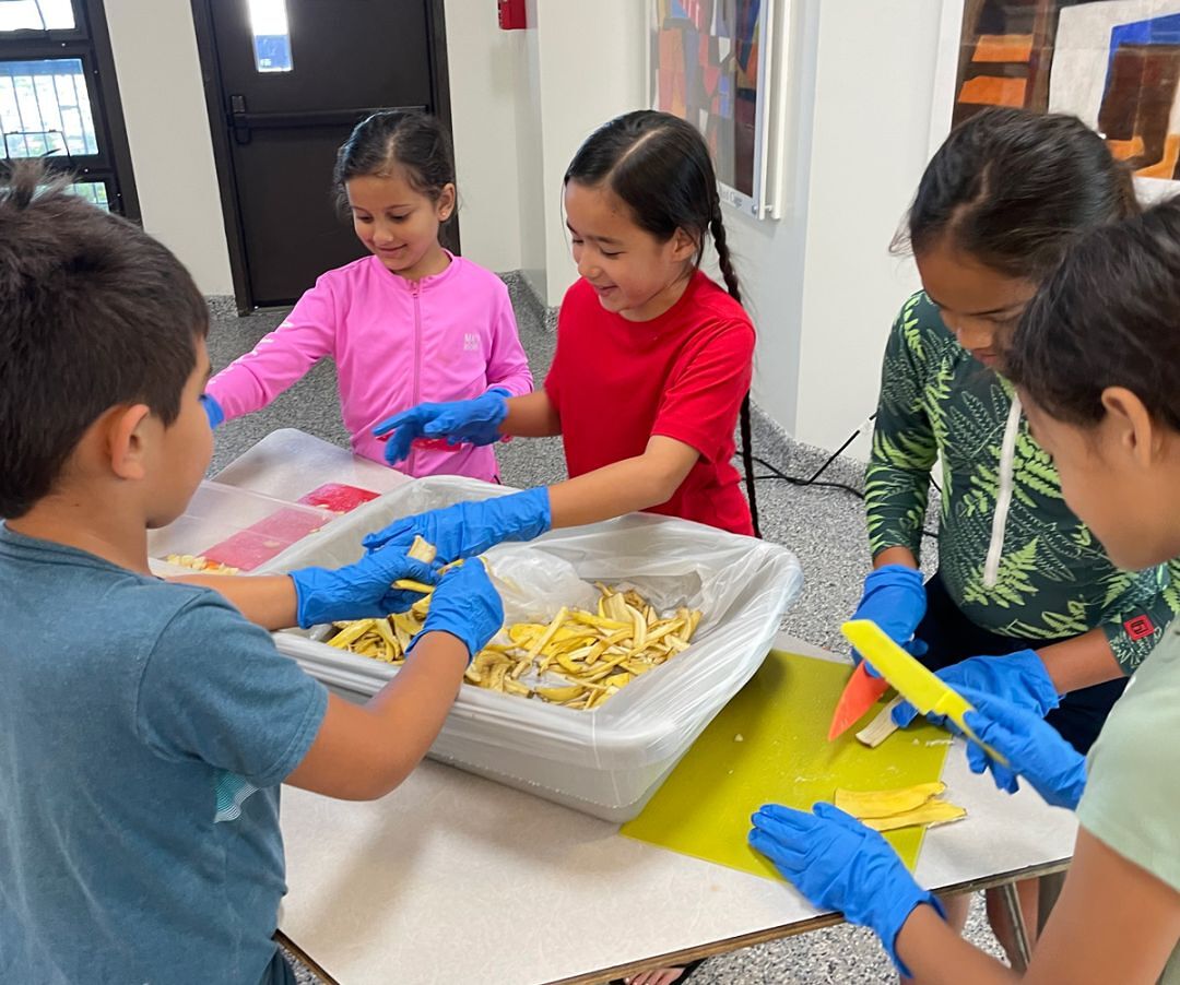 That's a lesson haumāna are taking off campus and into their homes and community. Grade 2 will be testing several home-based vermicomposting units to develop recommendations for their families and neighbors. Grade 6 haumāna are assigned projects to bring lessons about food waste home to their families. Teegan Nakamura (KSK ‘31) said this has helped deepen her understanding of several Hawaiian values. “Kuleana – we are the ones that are responsible to take care of the ‘āina and that starts by wasting less food at school and in our homes. Ho‘omau – sometimes I don’t want to have this responsibility to manage what I eat, but we have to do it for the ‘āina,” she said. Lyllye Nakea-Enos (KSK ‘31) sees a larger purpose in reducing waste: “live sustainable for ourselves, but also for future generations after we pass.”