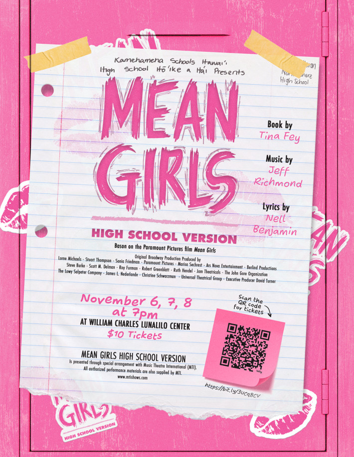 This is so fetch! Kula Kiʻekiʻe will stage the smash Broadway hit, Mean Girls, from November 6-8 in Lunalilo. Get your tickets on GoFan.