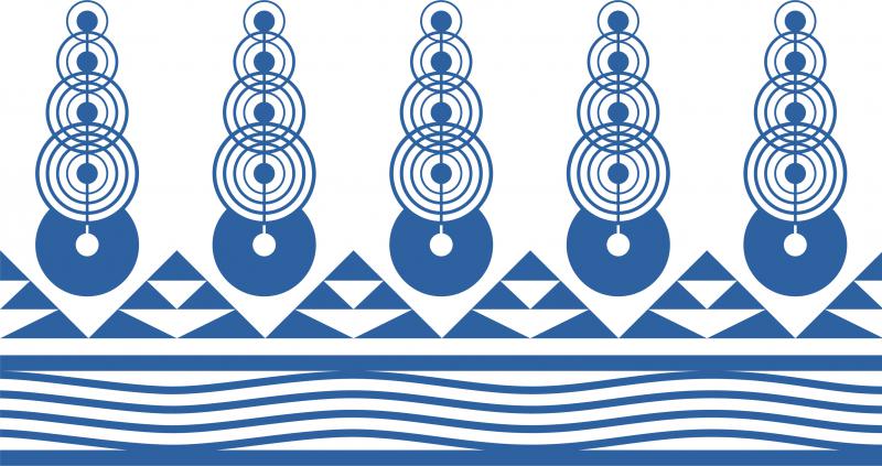 The wavy lines at the bottom of the design represent wai (water), a source of life and knowledge, and symbolize the underground waterway that once flowed through lava tubes and connected Keanakamanō (The Cave of the Shark) Valley at our campus’ main gate with Pu‘uloa (Pearl Harbor), Oceania and the rest of the world. Our mo‘olelo (stories) say that the Hawaiian god Kamohoali‘i traveled this waterway in his shark form to Kapālama. The chevron shapes represent a shark’s teeth and also the island of O‘ahu.