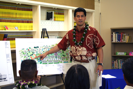 Kaulana Park of the Department of Hawaiian Home Lands outlines the department's plan to incorporate Kamehameha Schools' grant to create family learning centers in conjunction with transitional housing developments along on the Waianae Coast.