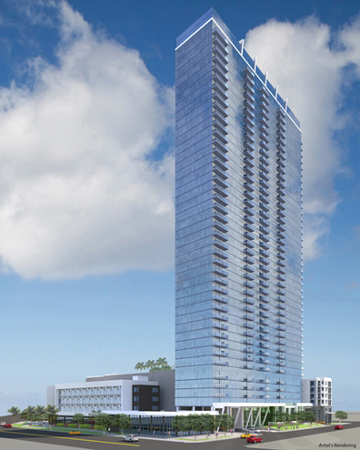 The high-rise tower residences will be the first product offered to buyers, with an estimated sales date of summer 2013. Sales of the mid-rise and town homes will be offered individually and incrementally at a later date. Heyer & Associates is the exclusive broker, and will cooperate with qualified brokers.