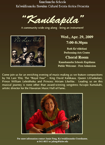 Leading us on this musical journey is none other than award-winning songstress Ku'uipo Kumukahi, artistic director for the Hawaiian Music Hall of Fame.