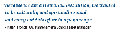 "Because we are a Hawaiian institution, we wanted to be culturally and spiritually sound and carry out this effort in a pono way. So we began the process by first meeting, talking story and praying with kūpuna," Fronda said.