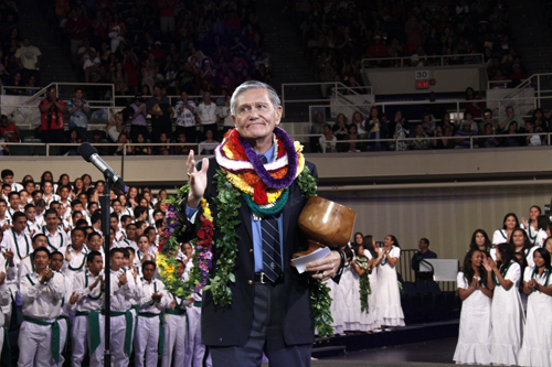 Dr. Michael Chun receives a standing ovation prior to announcing the Richard Lyman, Jr., 'Ōlelo Makuahine Award