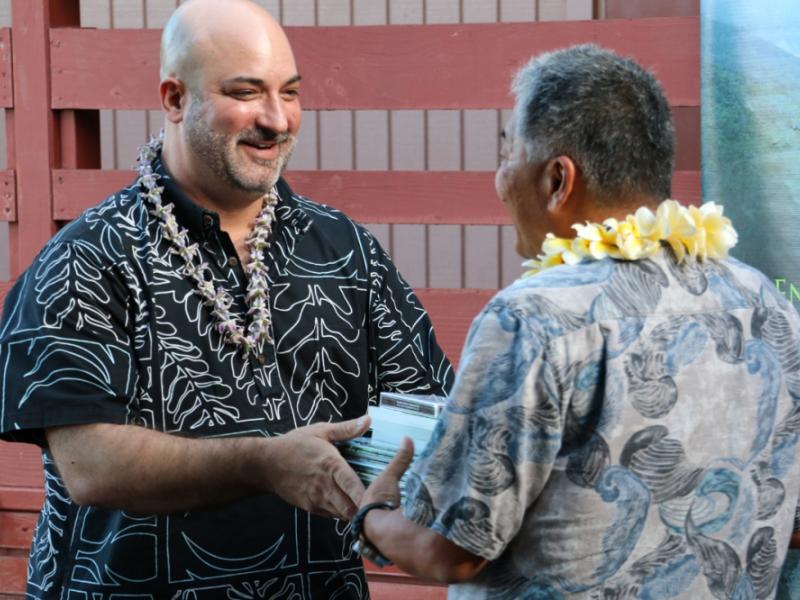 Ron Cox, director of Kamehameha Publishing, took part in a blessing celebration and announced the donation of more than 600 books to Kekaha Elementary School.