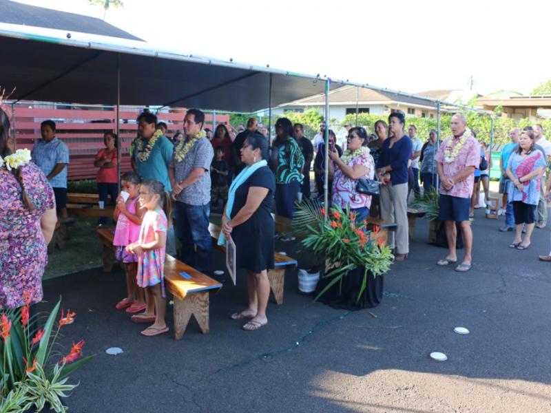 Prior to the blessing on Sept. 16, keiki and their families from across the island engaged in a variety of fun learning activities thanks in part to support from community collaborator Hui Ho‘omalu Partners in Development Foundation. The young children, some of whom are currently in foster care or have recently been placed with adoptive parents, mixed and played with “slime” and “playdough,” made flower lei, planted native trees and plants around the Community Hale and enjoyed movies and refreshments.