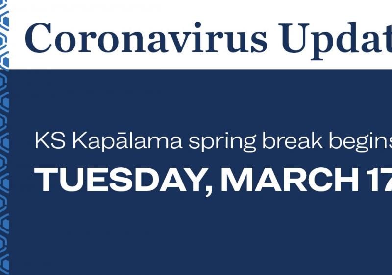 Spring break will now commence on Tuesday, March 17. Haumāna are scheduled to return to school on April 6 unless otherwise instructed.