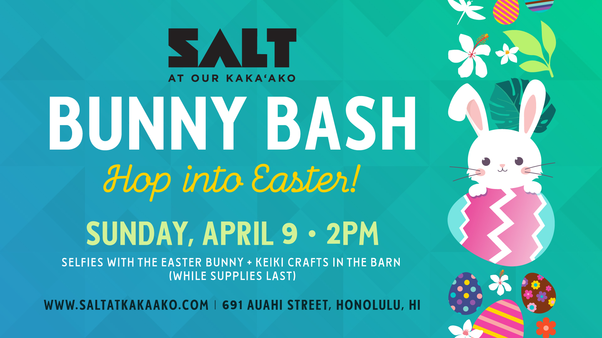 Kamaʻāina and visitors will “Hop into Easter” when they visit SALT’s colorful Springtime-themed photo station to take selfies with the Easter Bunny. Families may bring their cameras and phones to take pictures free of charge. Kids can also enjoy Spring/Easter keiki make-and-take crafts (while supplies last). Plus, everyone is welcome to enter the spin-to-win prizes from their favorite SALT merchants. The festive sound of Easter music will make The Bunny Bash complete.
