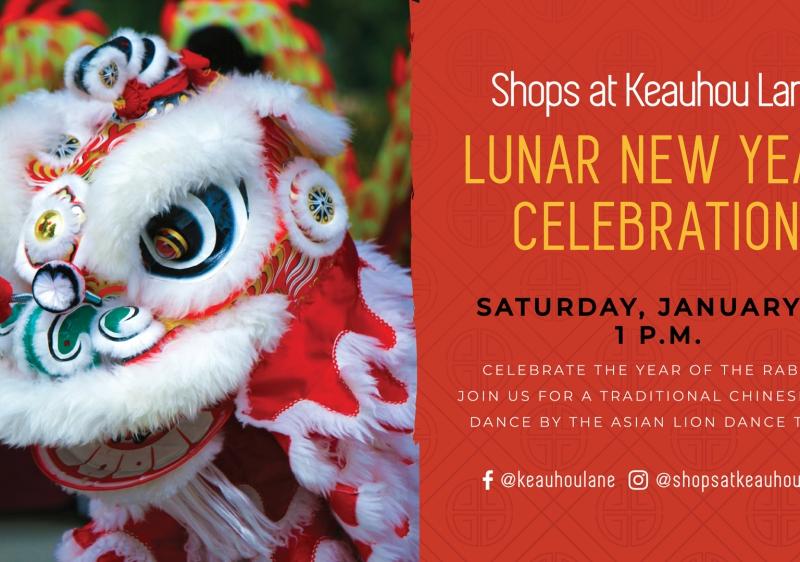 Celebrate the Year of the Rabbit at The Shops at Keauhou Lane at Our Kaka‘ako on Saturday, January 21, 2023. The festivities kick off at 1:00 p.m. with a special Chinese lion dance performance courtesy of the Asian Lion Dance Team. The whole ‘ohana is invited to participate in this free, family-friendly event.