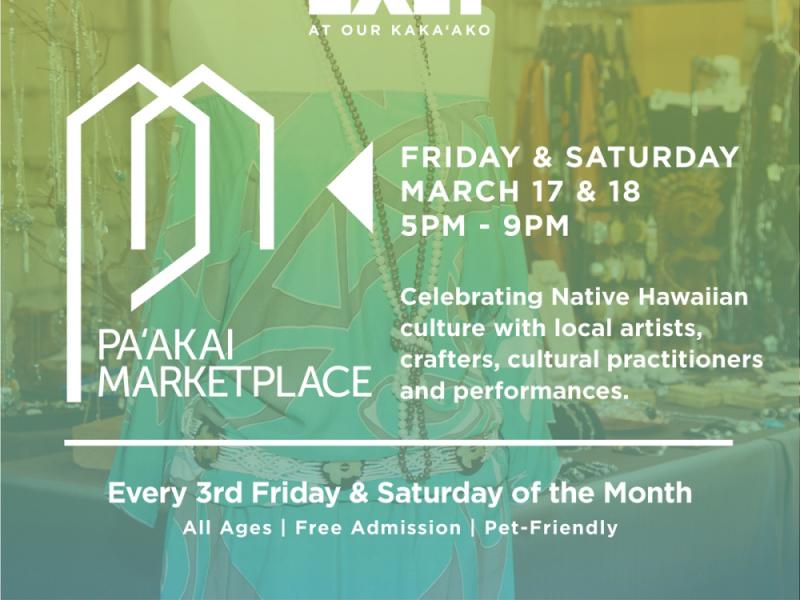KAKA‘AKO, HI (March 10, 2017) – Pa‘akai Marketplace at SALT at Our Kaka‘ako expands to a two-day event, on March 17 and 18, with a fashion show both nights by acclaimed Hawai‘i stylist Ari South. The marketplace, held every third Friday and Saturday of the month, brings Native Hawaiian artists and merchants to Our Kaka‘ako to feature locally-made products. The free event runs from 5 to 9 p.m. both nights and includes live music.