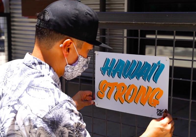 Twenty hand painted signs were recently installed at SALT at Our Kaka’ako, designed by POW! POW! Hawaii, with messages including “Love,” “We’re in this Together,” “Hawai‘i Strong,” “Compassion” and more. POW! POW! Hawaii is a gathering of contemporary artists that engages with the broader community in the process and creation of art, and known for its annual celebration painting murals in the urban neighborhood for people to enjoy.
