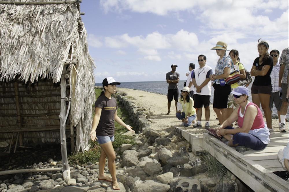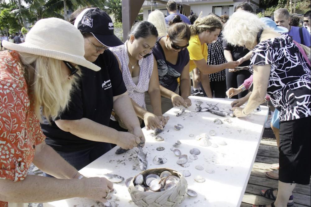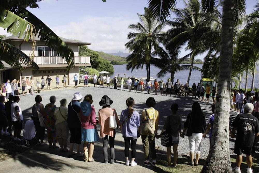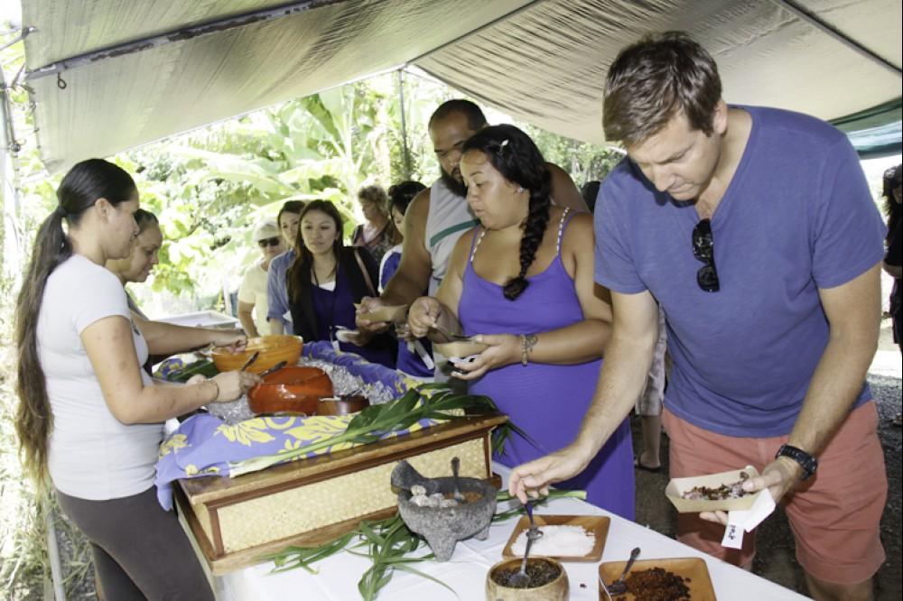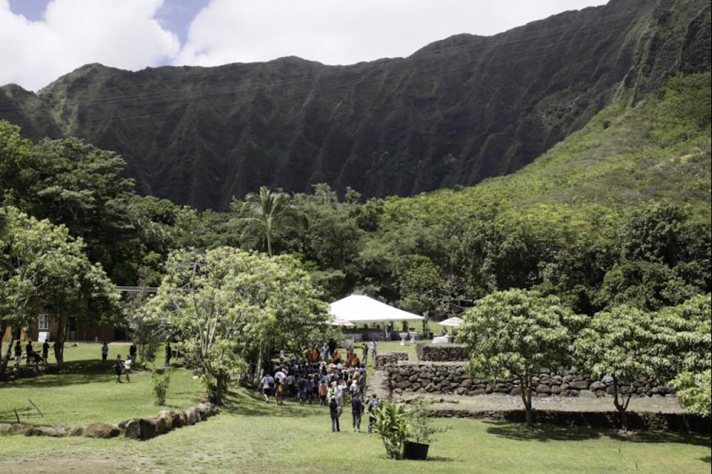 Community partner Paepae o He'eia treated the guests to a tour of the working fishpond, a hands-on fish clearning activity and a ono poke bar. Then the guests were transported up the valley to Papahana Kuaola for a tour of the lo'i, a turn at pounding kalo and then a sit down lunch with lau lau, poi, grilled beef, salad and dessert.