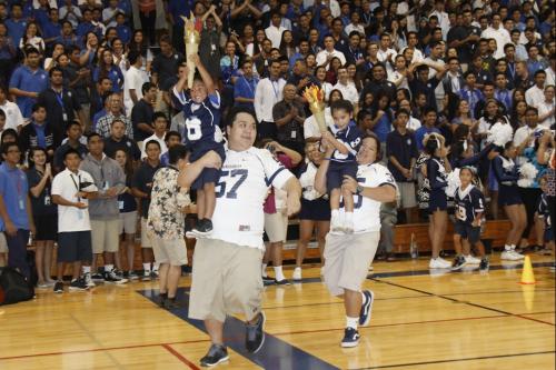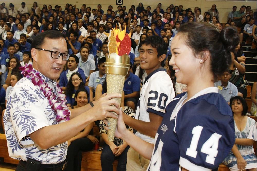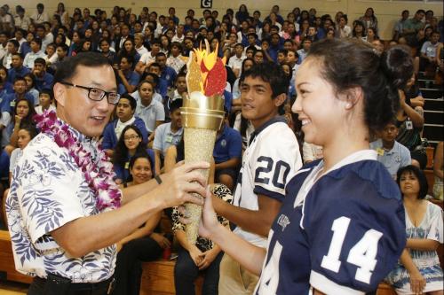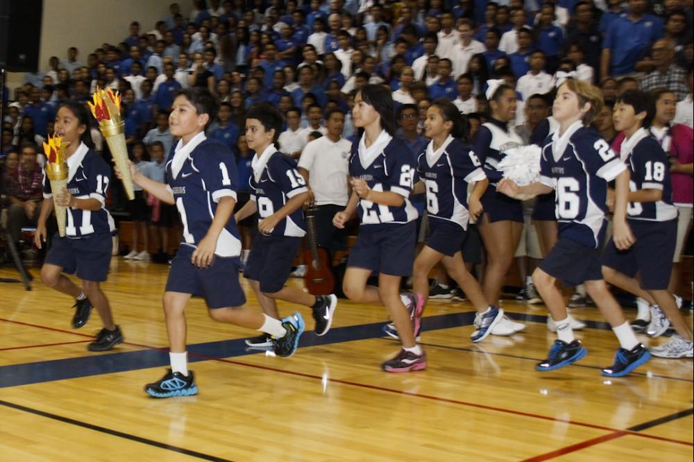 Mailer shared with students the excitement that a new school year can bring then told them how her Kamehameha education prepared her for life and a career that has taken many interesting turns. Following her manaʻo, the annual torch relay had the student body up and cheering as students from the upper grades passed the torch down to their younger siblings until the kindergarten students carried the torch across the finish line.