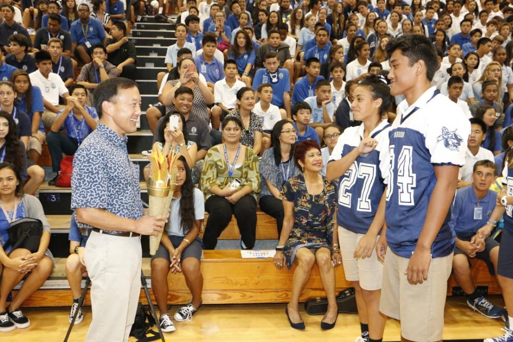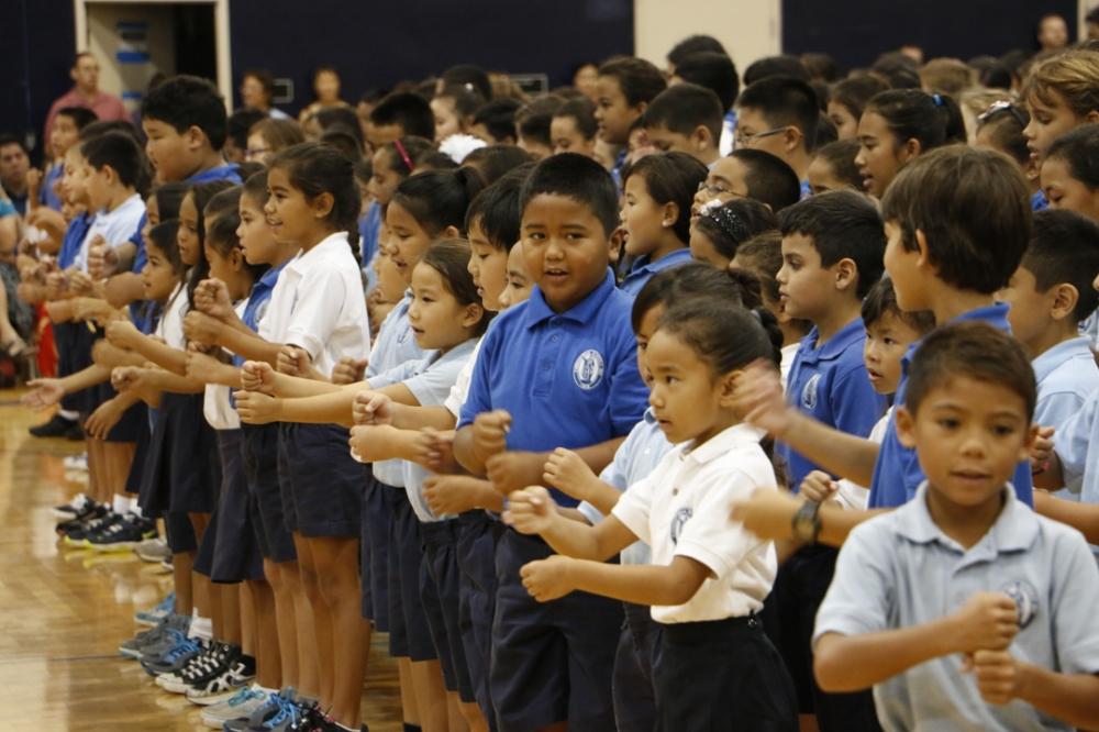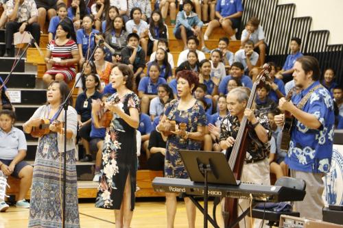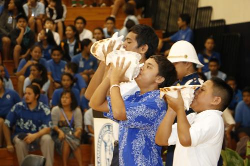 Kamehameha Schools Kapālama students and faculty members from elementary to high school celebrated the new school year with mele and hula at the campus’ annual convocation at Kekūhaupiʻo Gym.