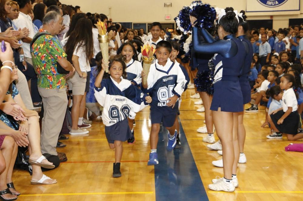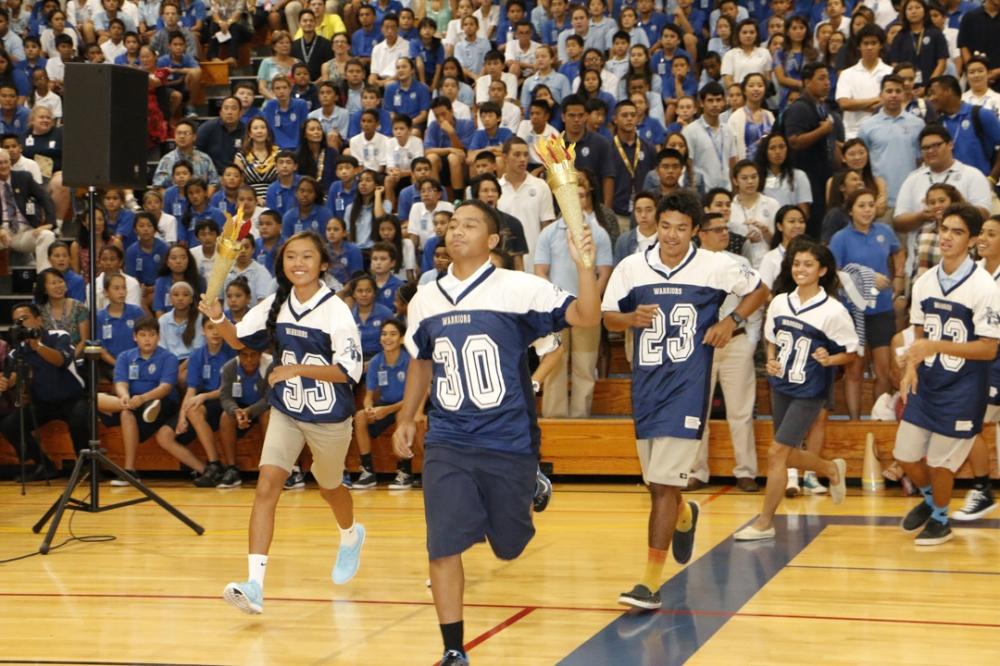 The convocation culminated with the annual torch relay. Attendees cheered as students from the upper grades passed the torch down to their younger siblings until the kindergarten students carried the torch across the finish line.