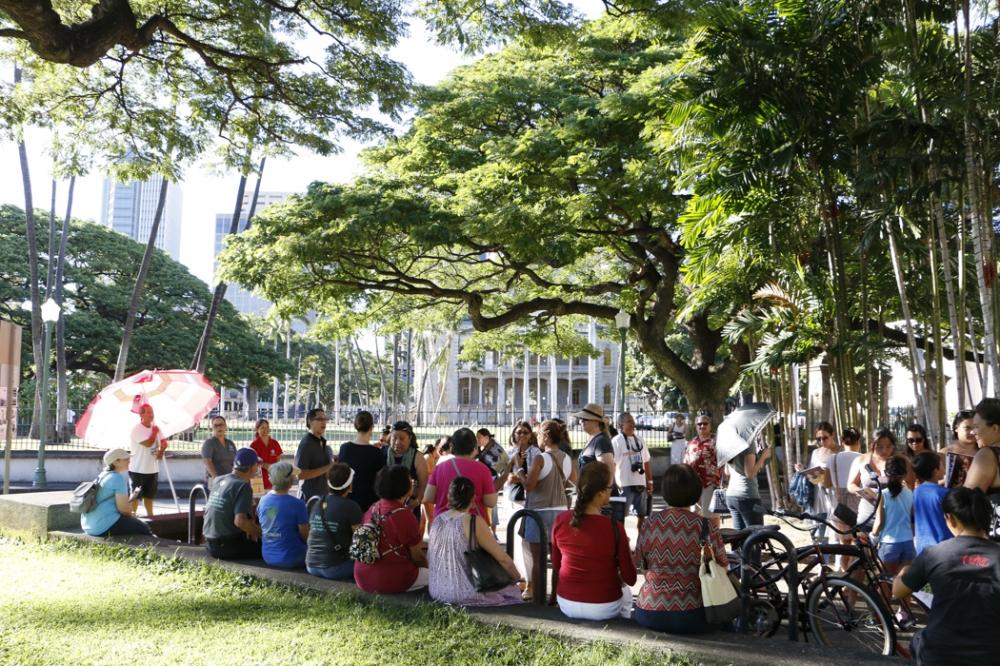 Onipaʻa (steadfast) celebrated the queen’s birthday and Mai Poina (never forget) was a historical walking tour illustrating the events leading up to the 1893 overthrow of the Hawaiian Kingdom.