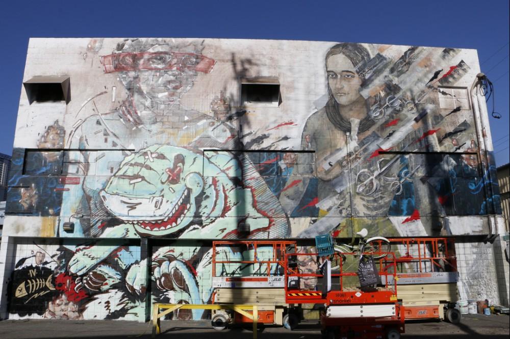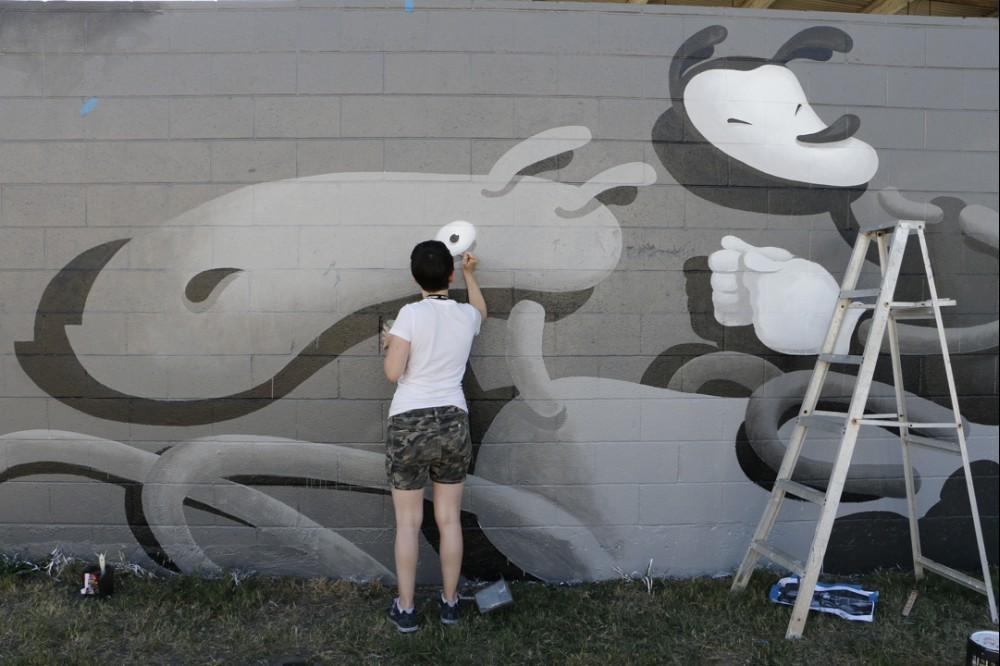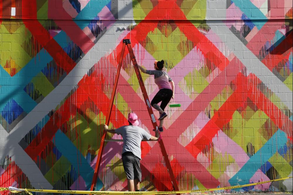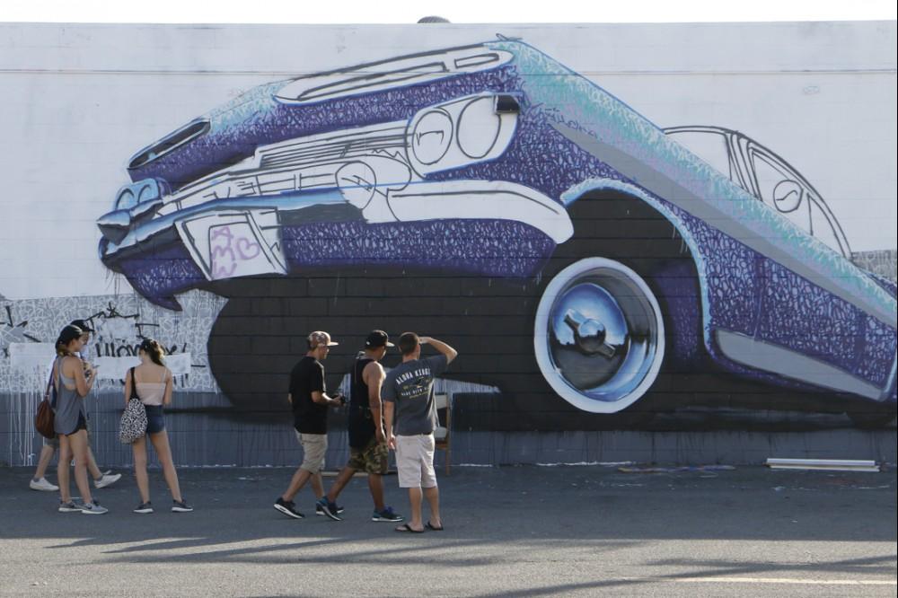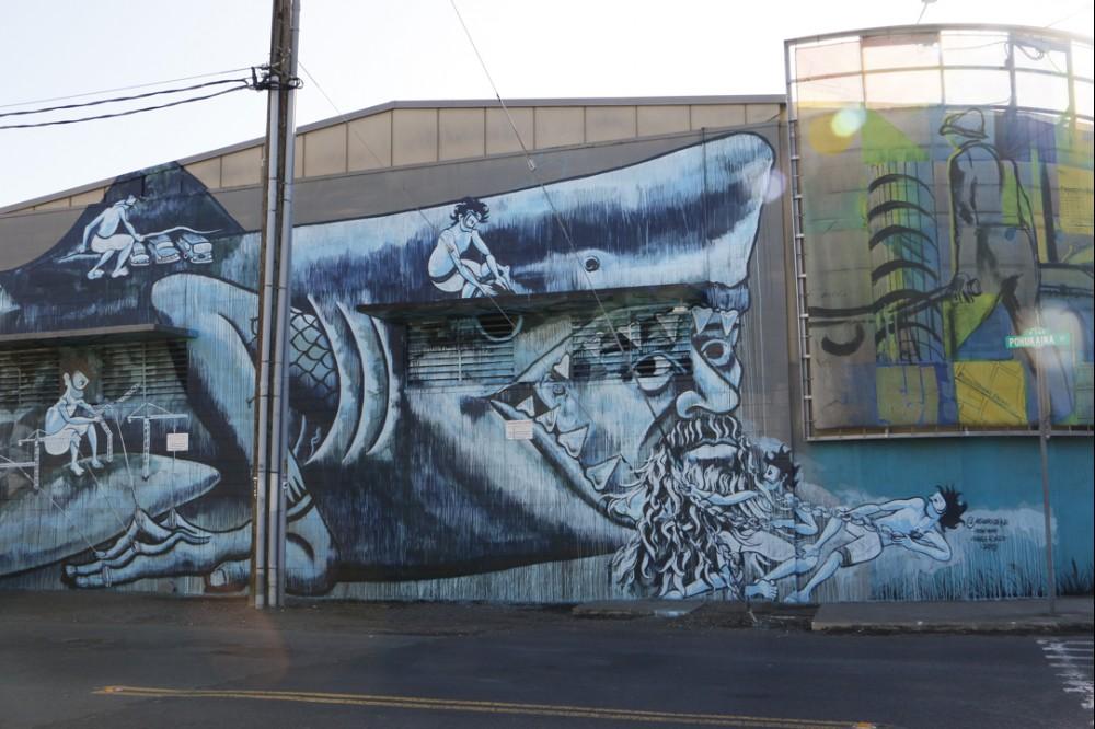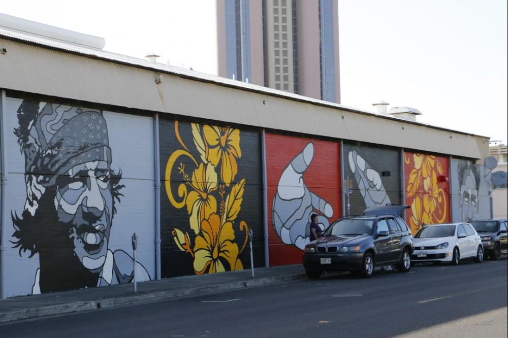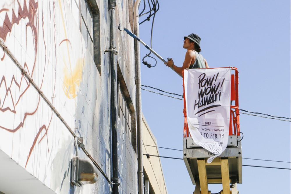 Urban artists recently converged in Kakaʻako for the 2015 POW WOW HAWAIʻI festival. Kamehameha Schools provides the canvas for the large-scale art pieces by allowing artists to express themselves on walls throughout the neighborhood. The event brings art and music to Kakaʻako, which is transitioning from a dull warehouse district to a lively place where people can live, work play and appreciate the outdoor art.