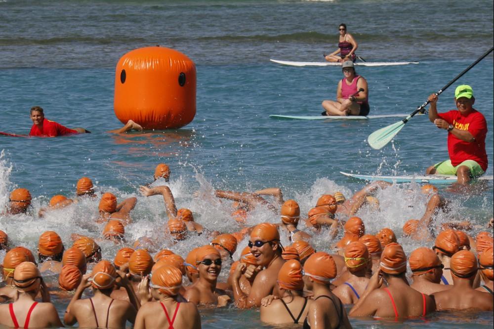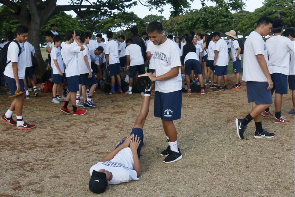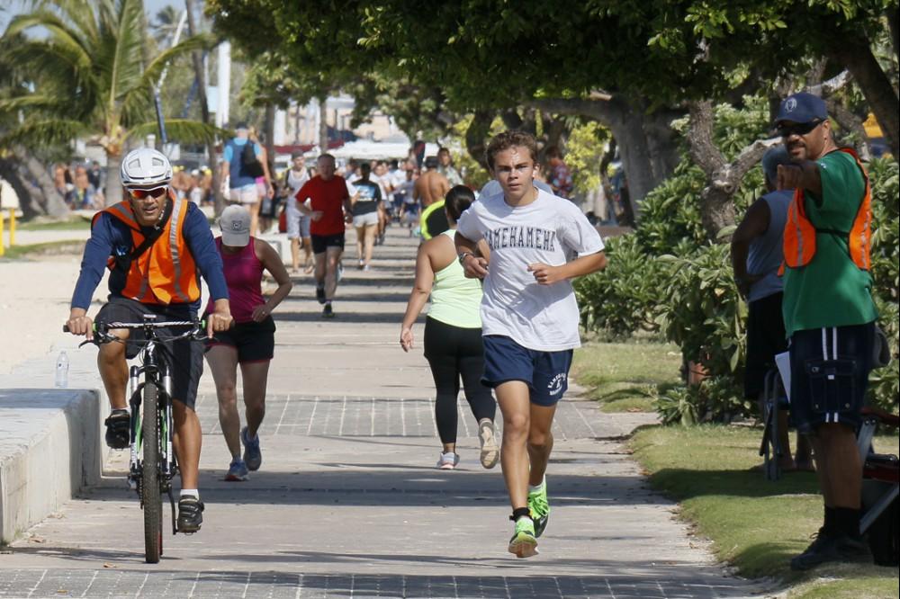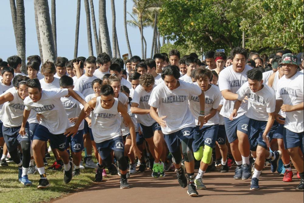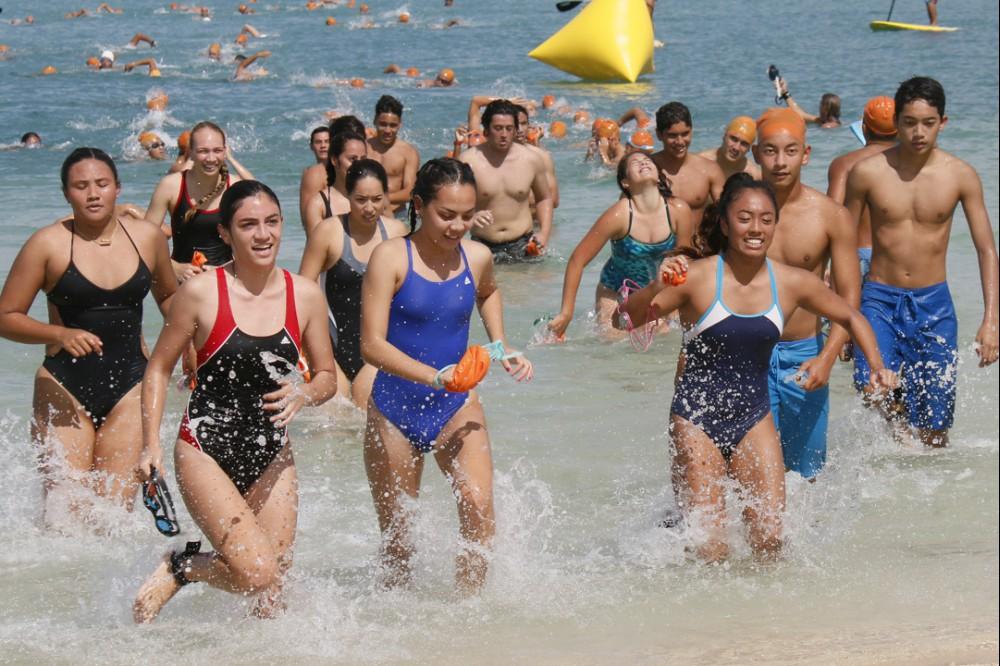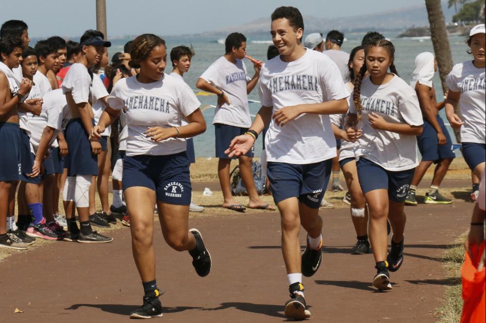 KS Kapālama freshmen and sophomores recently completed their culminating activities for their physical education classes.The fitness events included a 10K run, 3K swim and a Biathlon. Freshmen had a choice of running 10K (6.2 miles) around Ala Moana Beach Park three times or swimming 3K (1.86 miles) – about 3 lengths of Ala Moana Beach.