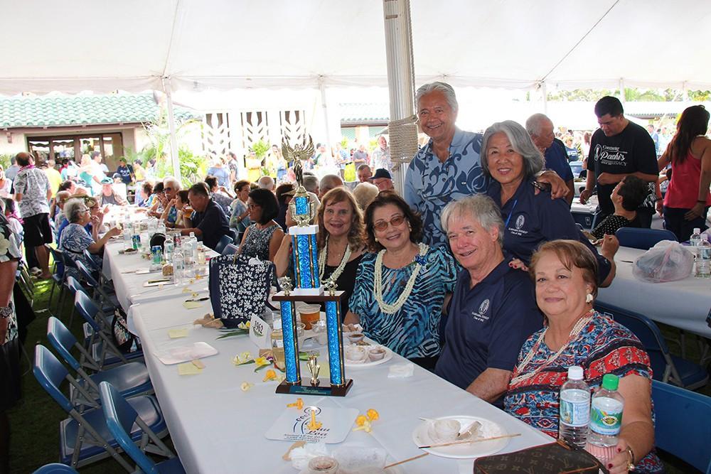 Friday, June 9, was reserved for class night activities, as each of the celebrating classes held their own events off campus to reunited with classmates. Many participated in the Kamehameha Day Parade in the morning on Saturday, June 10. That night, over 1,700 alumni got together for the Alumni Lūʻau under the large tent at Konia Field. The week ended with an emotional chapel service at the Ruth Keʻelikōlani Auditorium on Sunday, June 11, where alumni in the celebrating classes honored classmates who have passed on.