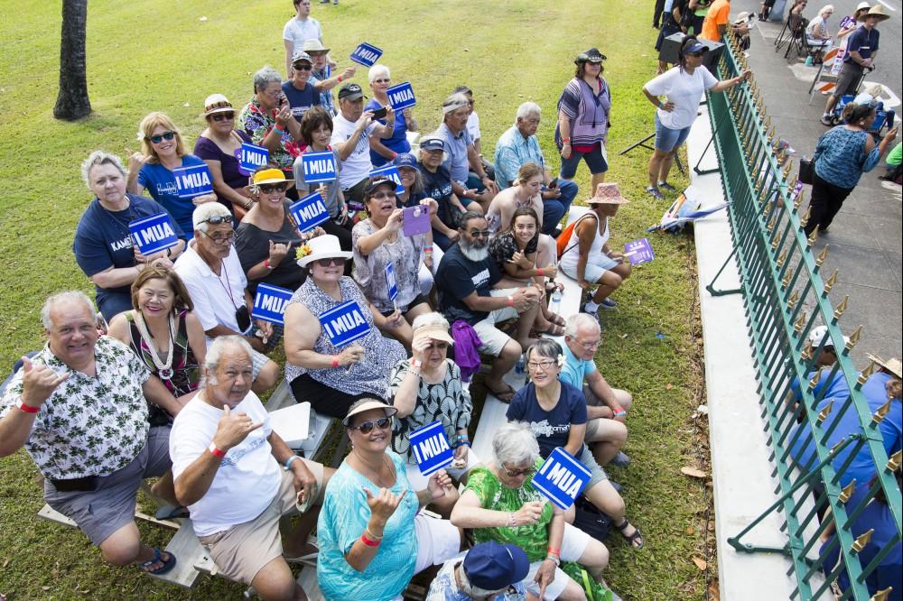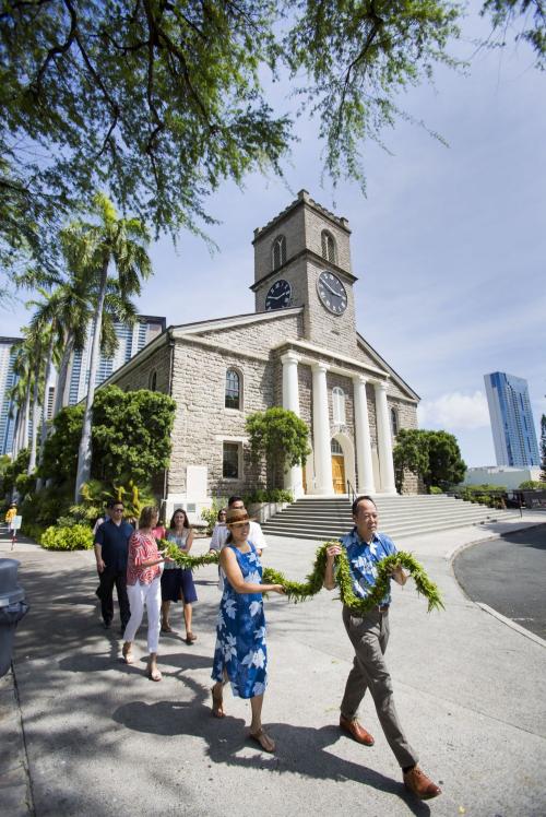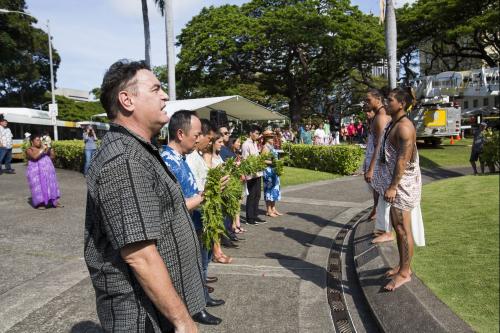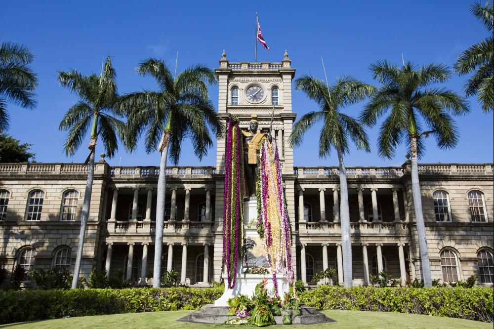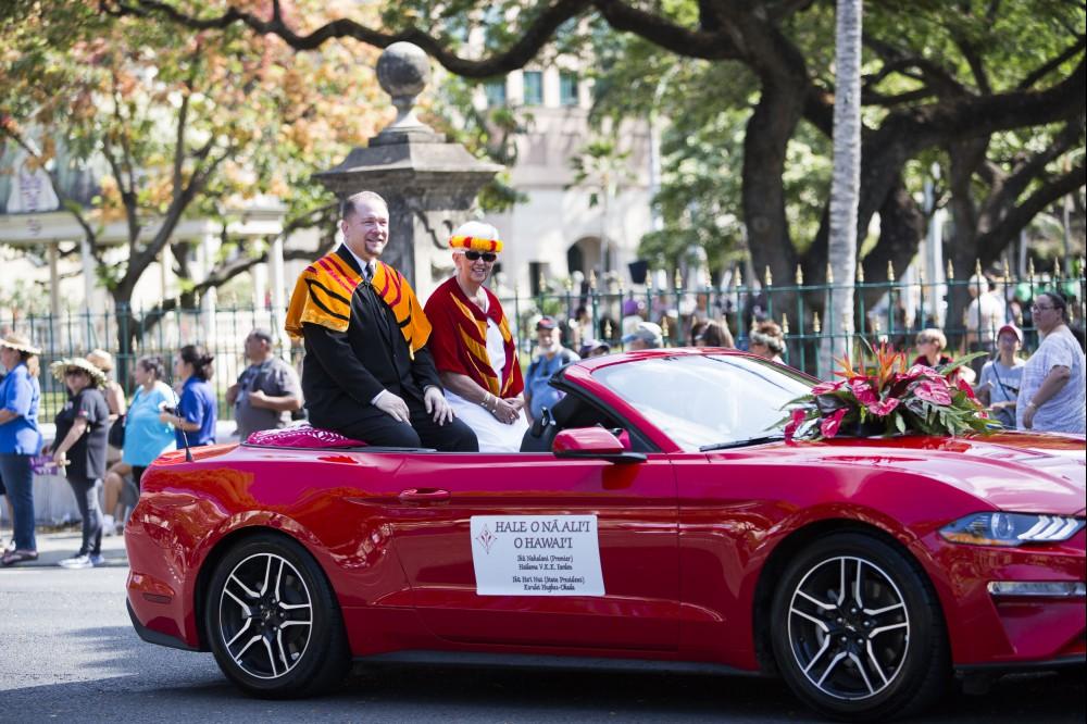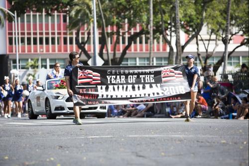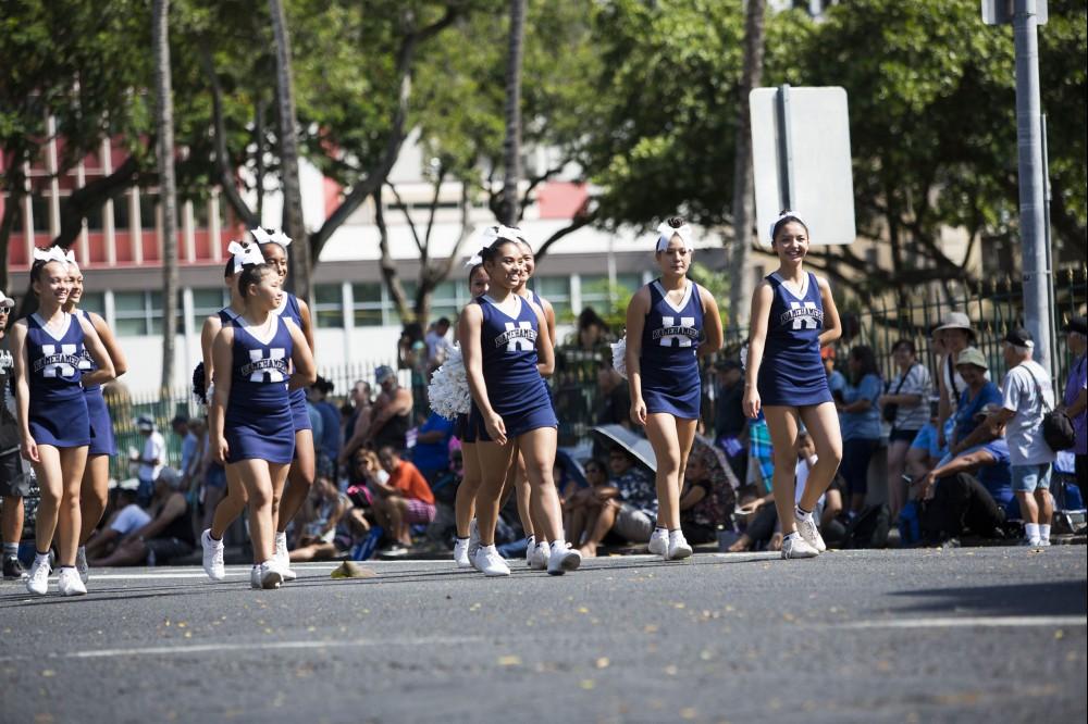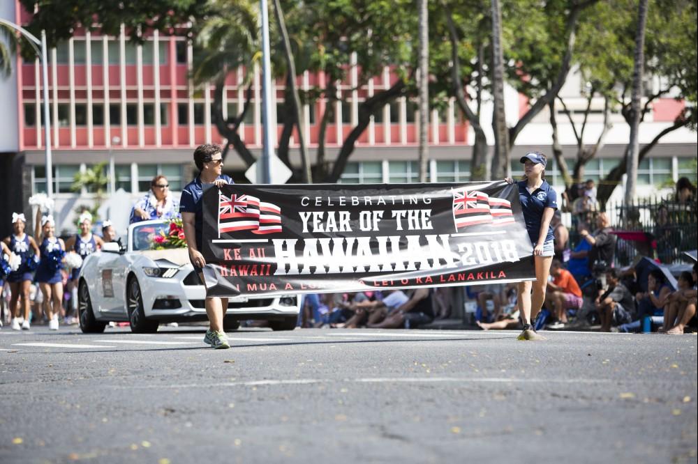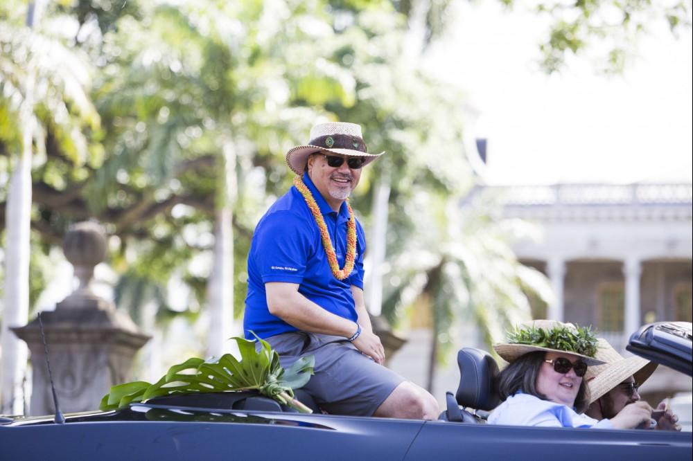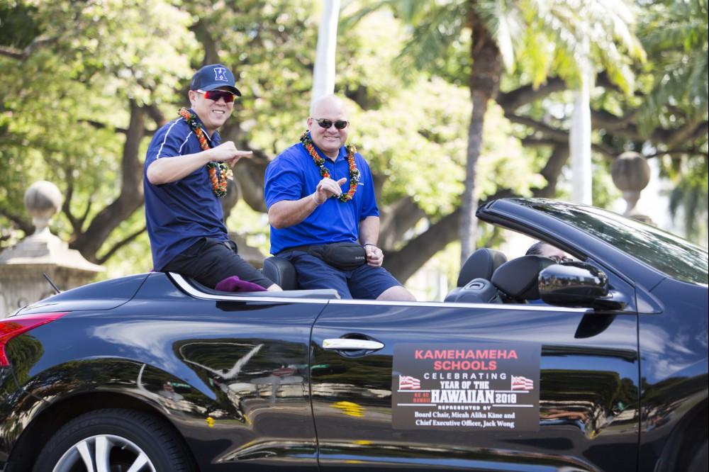 Last weekend's Kamehameha Day festivities were full of pomp and pageantry! The O‘ahu celebration included a King Kamehameha statue lei draping and parade. The Kamehameha Schools lei presented at the Ali‘iōlani Hale ceremony on Friday was fashioned by KS Kawaiaha'o Plaza staffers with materials gathered from Princess Pauahi's ʻāina, including palapalai, palaʻā, and kupukupu. During Saturday’s parade, KS was joined by Hawaiian-serving organizations in a strong showing of our lāhui’s solidarity. The parade contingent was comprised of leaders from each organization to honor Kamehameha ‘ekahi, and to celebrate Ke Au Hawai‘i - The Year of the Hawaiian. KS CEO Jack Wong, trustees Micah Kāne and Lance Keawe Wilhelm, and the KS Kapālama cheerleaders were among those who participated in the parade.