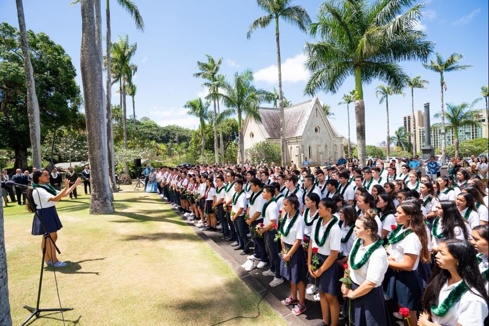 Seniors from our three Kamehameha Schools campuses gathered on O‘ahu to honor Princess Bernice Pauahi Bishop and to affirm their bonds of loyalty to their school and each other. Maui and Hawai‘i seniors met at Mauna ‘Ala – the final resting place of Princess Pauahi – to honor to her memory. They then joined KS Kapālama seniors for some launa time on campus before the entire group traveled to Kawaiaha‘o Church for a tri-campus chapel service.