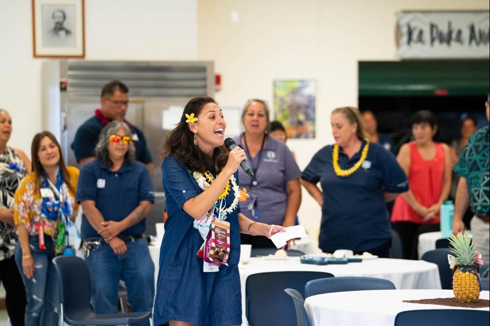 The Kamehameha Schools Maui Island ‘ohana gathered to honor 40 of its campus and community staff members celebrating up to 25 years of service to Pauahi’s legacy! The island’s Service Award day included lunch at Keʻeaumokupāpaʻiaheahe Dining Hall, entertainment and plenty of launa!