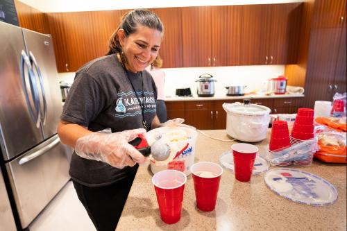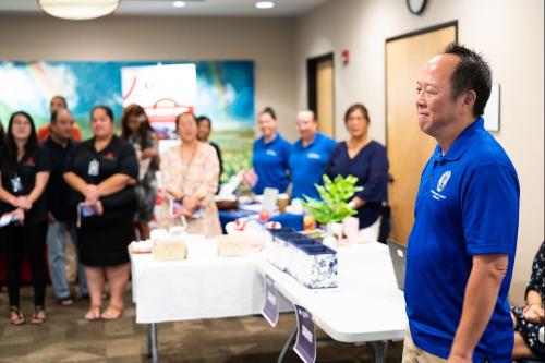 Kawaiaha‘o Plaza, KS Kapālama and KS Maui staffers held fundraising events during our recent Workplace Giving campaign to raise additional donations for our recipient organizations: the Pauahi Foundation, Aloha United Way and the Hawaiian Way Fund. So far the events have raised more than $6,200 (funds are still rolling in). KSK fundraisers included a Nā Limahana ‘o Kapālama Cookbook, and KSM sold slipper passes, luggage tags and more! Following is a glimpse at the Kawaiaha‘o Plaza campaign kickoff celebration featuring various fundraisers and representatives from the campaign’s recipient organizations.