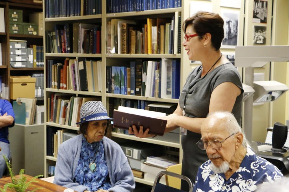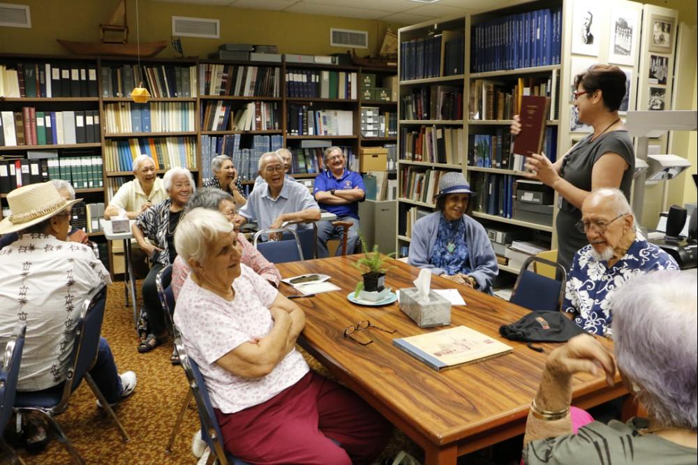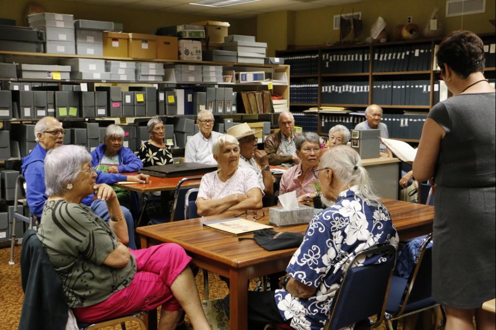 Members of the Kamehameha Schools class of 1950 recently paid a visit to the KS Archives in Midkiff Learning Center on the Kapālama campus.