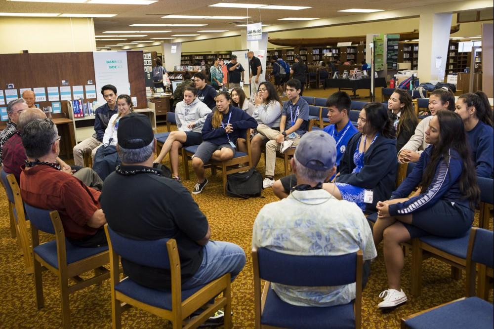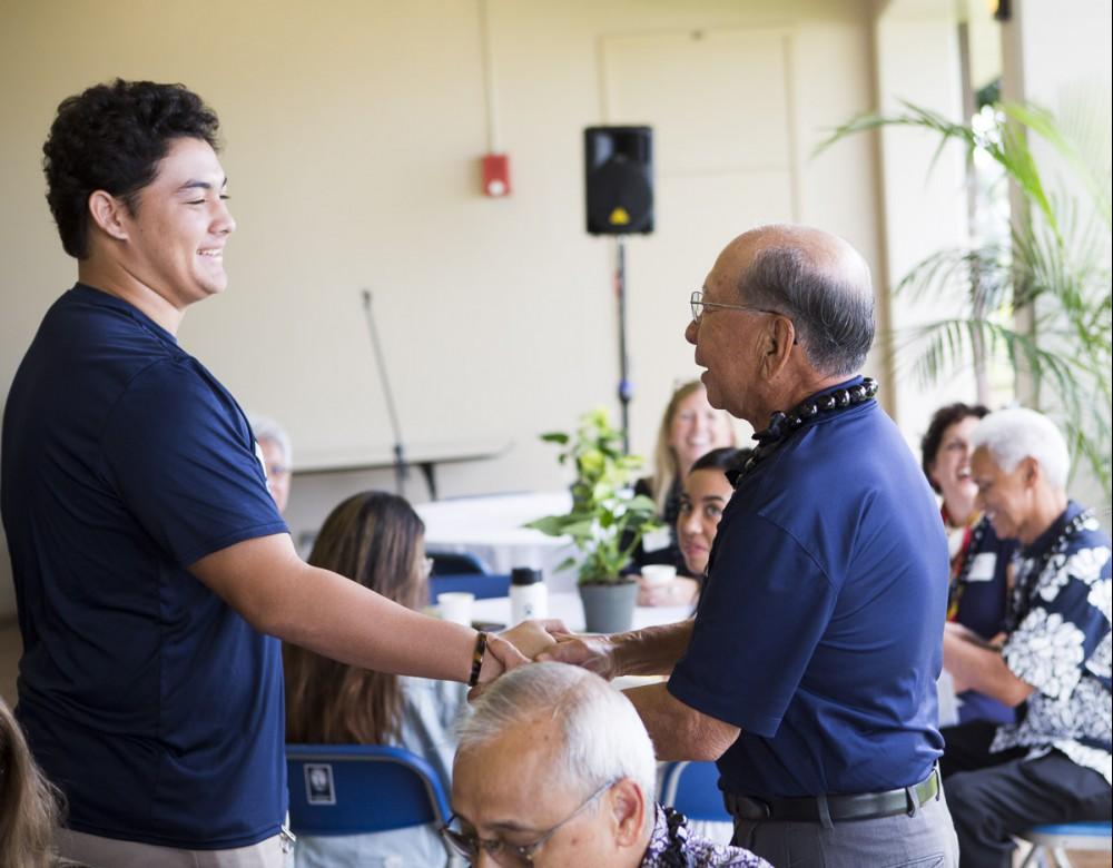 Also, the group was treated to an impromptu reflection from former KS trustee and retired Vice Admiral Robert Kihune KSK’55, who talked about how his experience as a student at KS helped him succeed in his military career. After the morning activities, a handful of the veterans took part in panel discussions at Midkiff Learning Center with students interested in pursuing a military career.