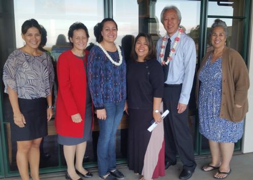 Nānākuli Learning Center Preschool Kumu Chelsie Omo; KS Hawaiʻi Administrative Coordinator Dannielle Iuta, middle school Technology Kumu Kerry Kamisato, Parent Education and Student Activities Coordinator Sonya Ah Chong and Senior Administrative Assistant Caron Martin; and KS Maui Kahu Kalani Wong, Strategic Initiatives Director Rhonda Alexander-Monkres, Laptop Administrative Coordinator Garret Kovach, Parent/Community Coordinator Lokelani Patrick, and Administrative Assistant Sunny Kim.