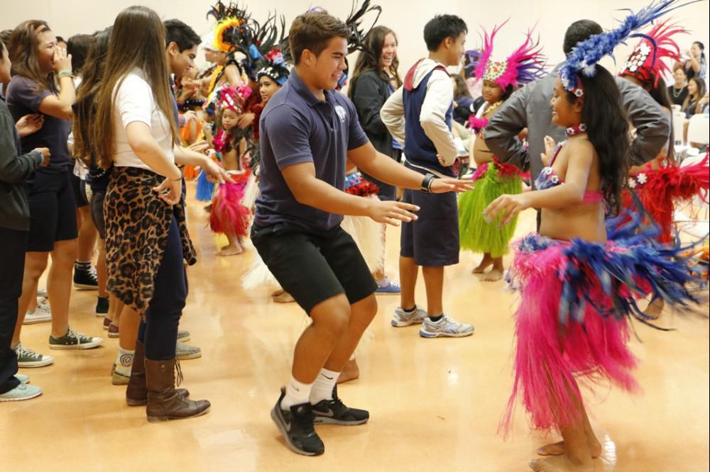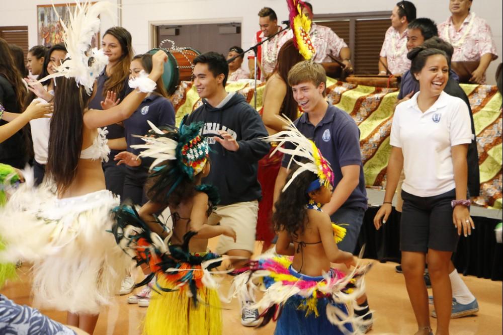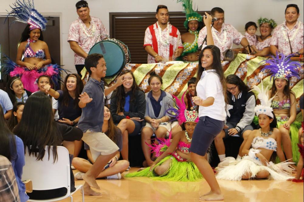 This Polynesian performing group presented a dynamic and enjoyable array of dances and songs from their island home. Also featured was the unique art form of Cook Islands drumming using traditional paʻu (drums) and tokere (wooden slit drum). This was the first Cook Islands performing group to visit KS Kapālama in over 20 years.