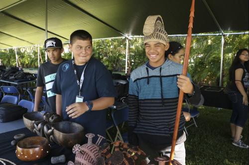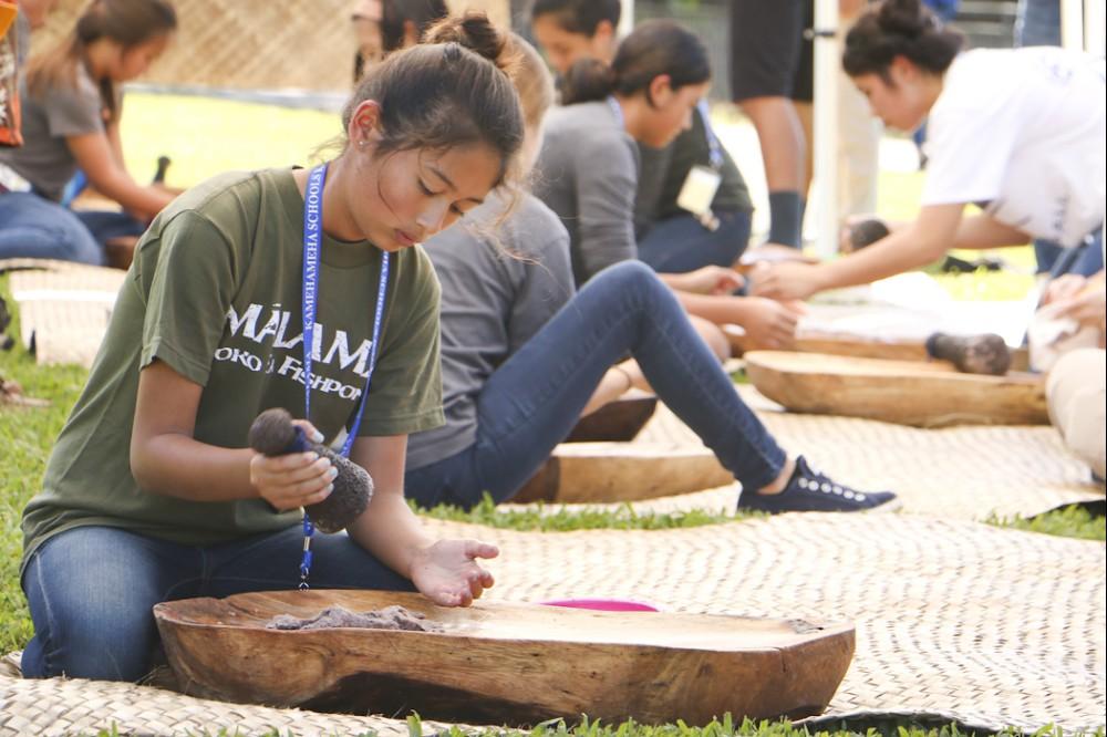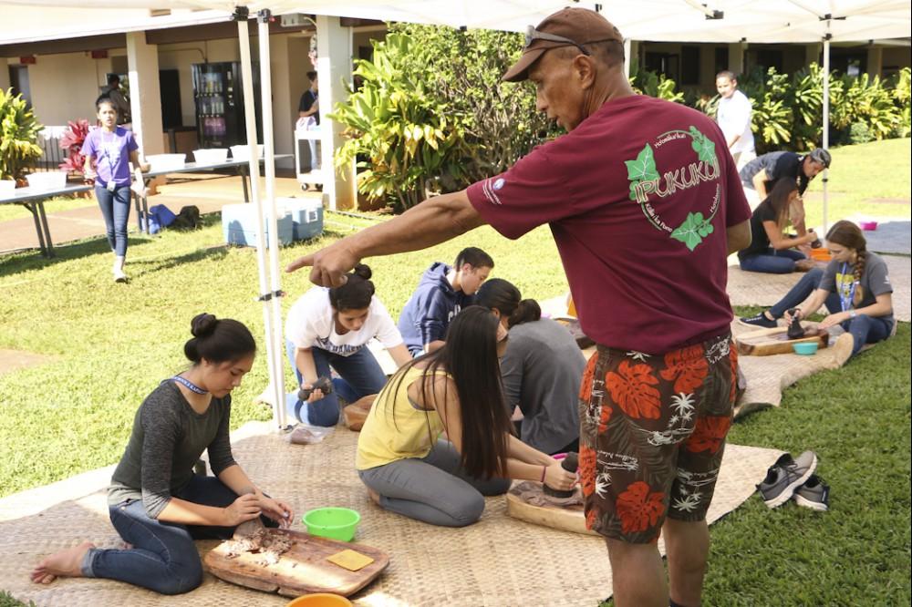 Kapālama campus freshmen recently enjoyed a mini Hawaiian festival on the lawn outside their classrooms. Cultural specialists brought their knowledge and skills to share as students learned about ancient Hawaiian beliefs and practices, and how to pound kalo.