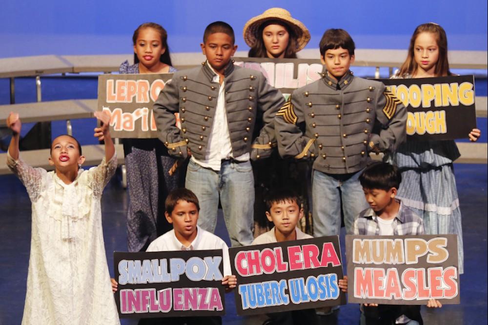 The annual Kamehameha Schools Kapālama fifth grade play entertained audiences recently at Princess Ruth Ke‘elikōlani Auditorium. The play is the culmination of months of research, writing, composing, props construction and costume design that involves all fifth grade students, teachers and staff members.