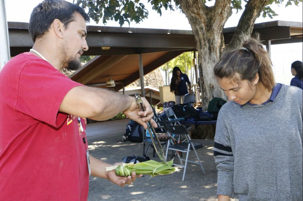 Recently, cultural specialists from Kamehameha's Ho‘okahua Cultural Vibrancy Group helped KS Kapālama Hawaiian Language 2 students learn more about their culture. The lessons were taught entirely in ‘ōlelo Hawai‘i (the Hawaiian language).