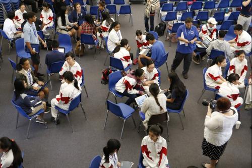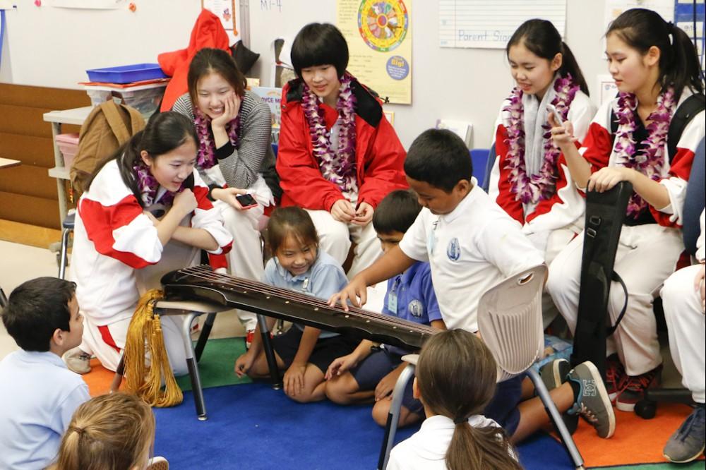 Chinese students and staff from RDFZ Xishan School in Beijing, China recently visited Kamehameha Schools Kapālama as part of the students’ Performing Arts Tour of the United States. The group visited the campus high school, middle school and elementary school over two days and stayed overnight in Keōpūolani Dorm.