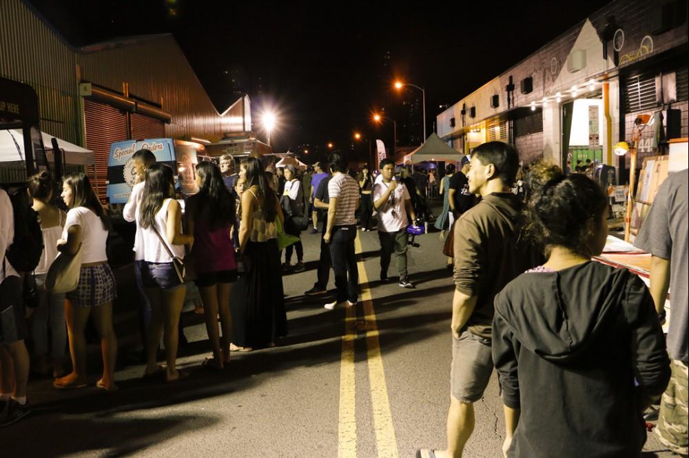 The next Honolulu Night Market is slated for Valentine's Day, February 14 and will feature a Pow Wow Hawai‘i block party. The event runs from 6 p.m. to 11 p.m. and free parking is available at the 555 South St. parking lot.