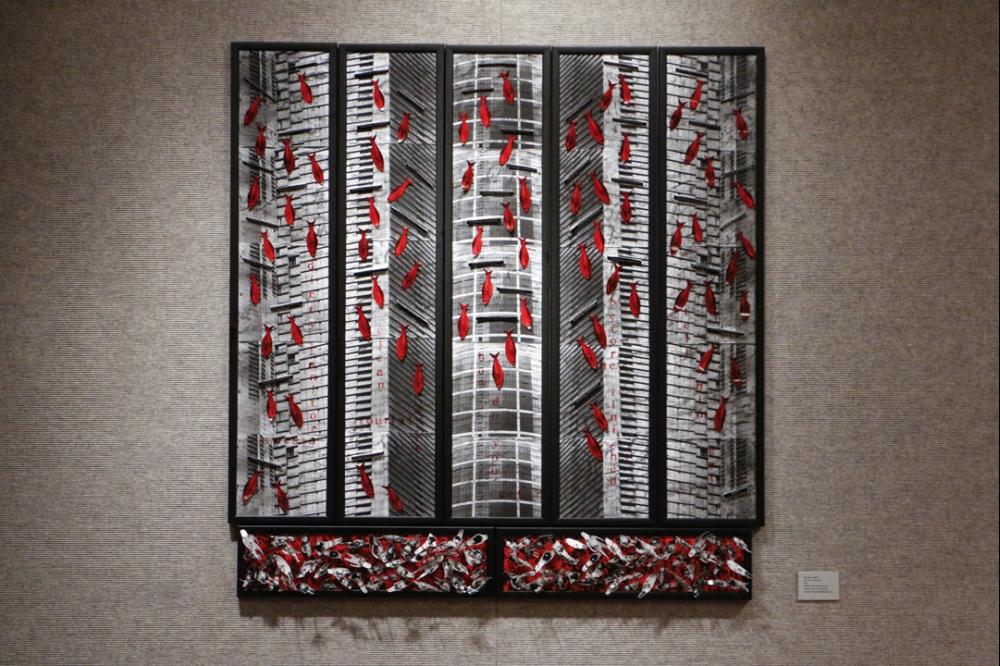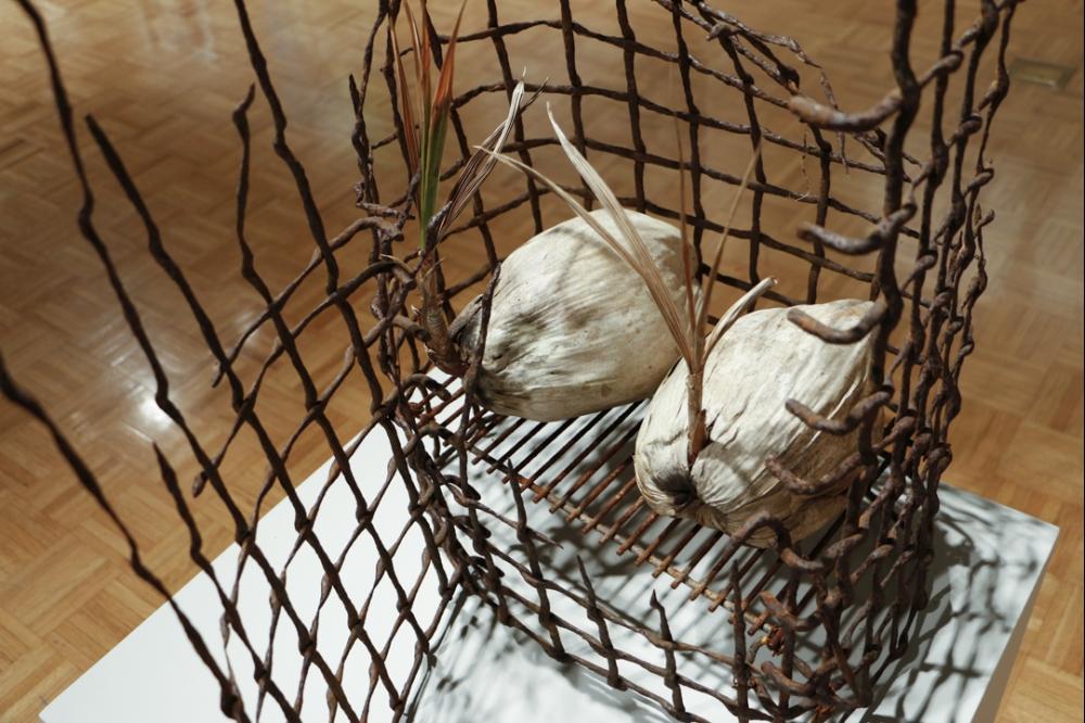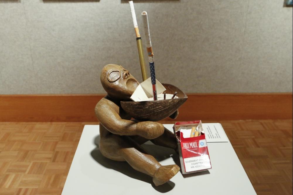 The exhibit includes pieces by KSK High School visual arts teachers Jan Becket and Carl Pao and KS alumni including Pao, Kauka de Silva, Kupaa Hee, Kapulani Landgraf, and Cory Taum.