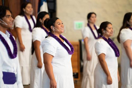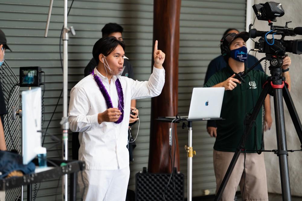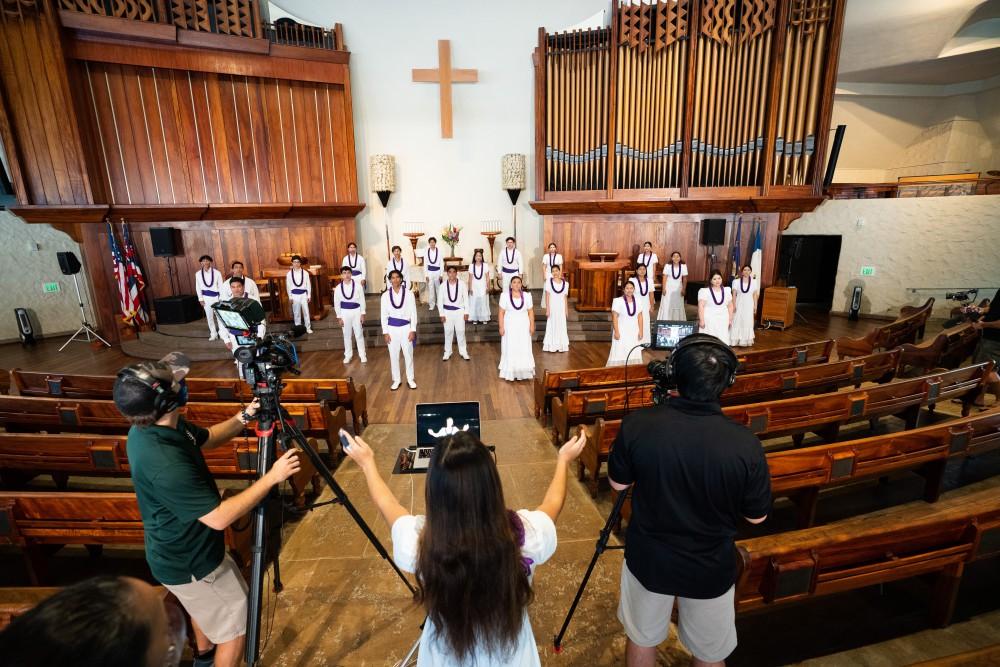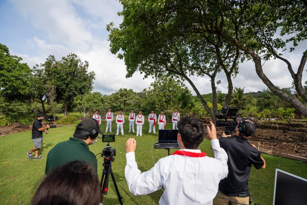 In a move to reclaim some of what has been lost this year due to pandemic restrictions, the students of Kamehameha Schools Kapālama will proudly present mele aloha ʻāina that capture the stories of our lāhui today so they can be sung 100 years from now. Layering hundreds of bass, baritone, tenor, alto and soprano voices, the voices of KSK haumāna will be showcased in an unprecedented virtual choir performance. Check out behind-the-scenes photos of the production, which was shot at various locations around the Kapālama campus. Tune in Friday, May 7 for I Mau Ke Aloha ‘Āina - 101 Years of Song Contest. The pre-show broadcast begins at 6:30 p.m., followed by a live broadcast at 7:30 p.m. Viewing links will be made available at www.ksbe.edu/songcontest/2021/ .