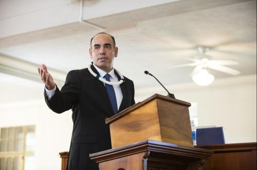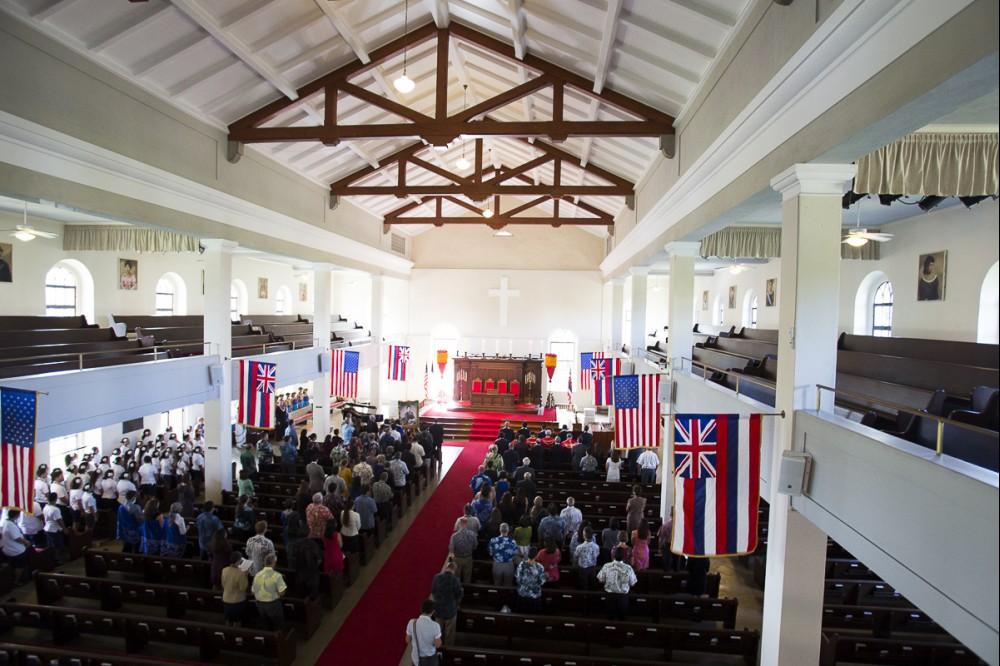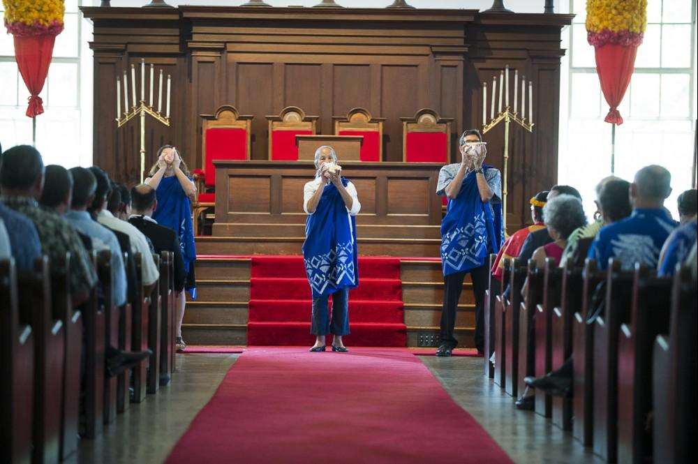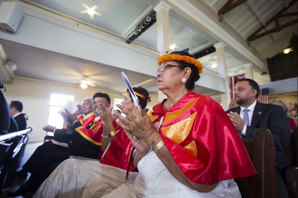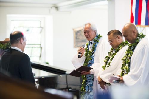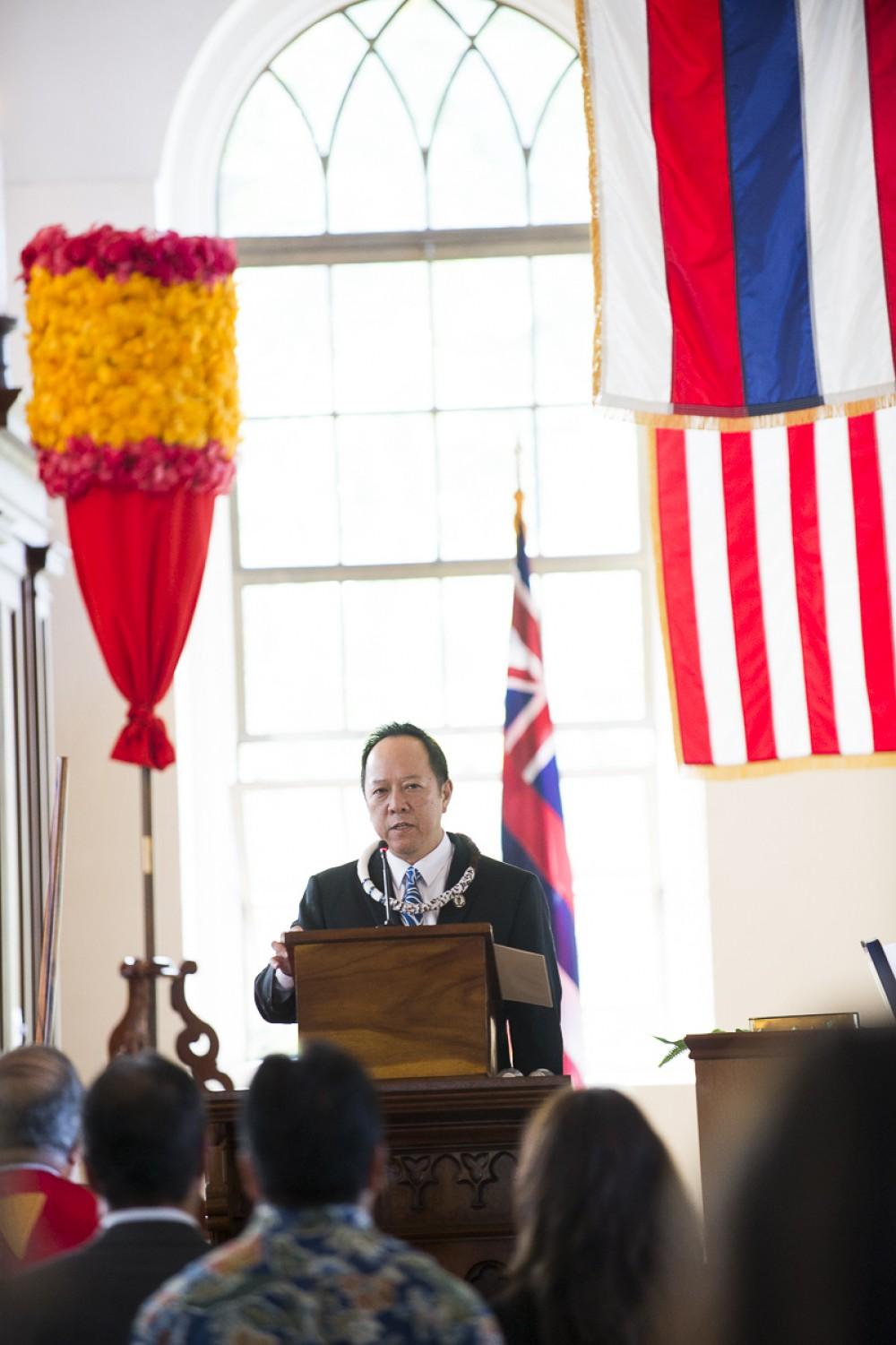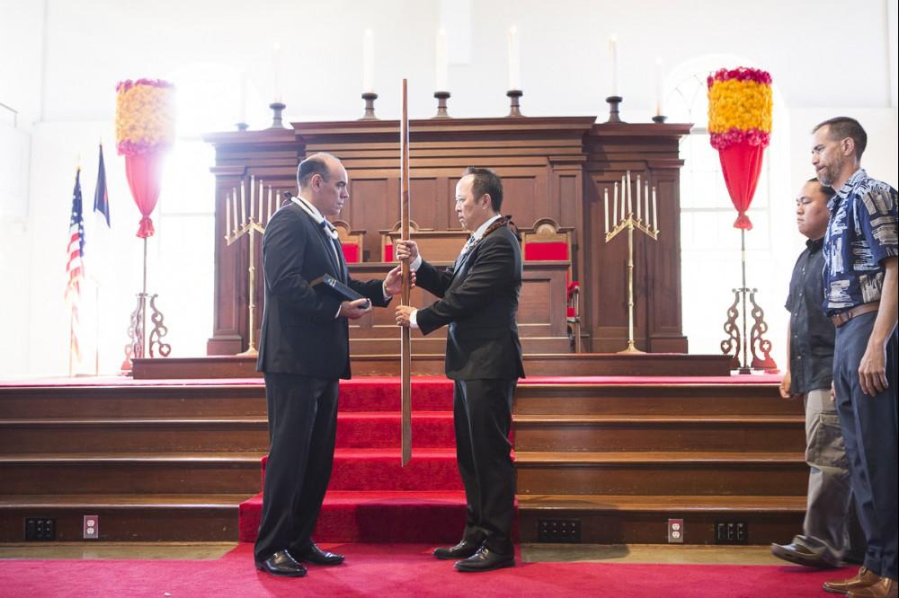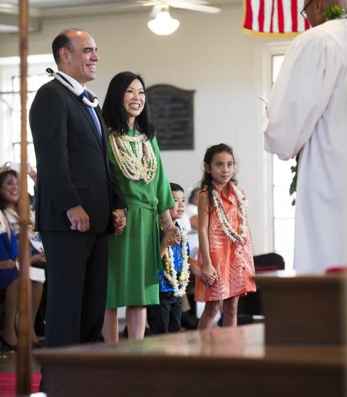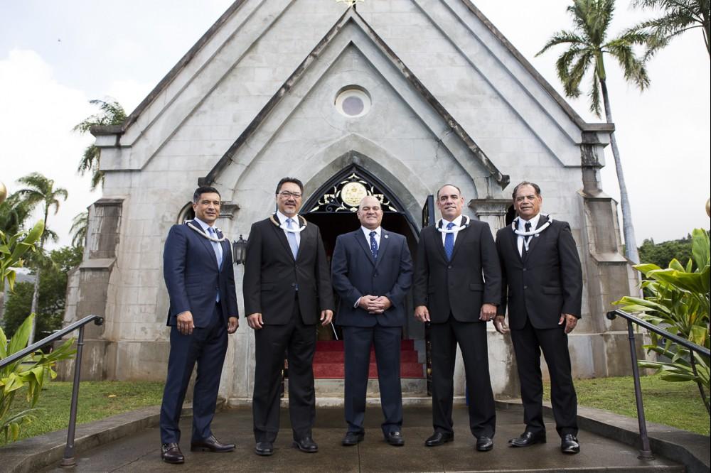 Kamehameha Schools honored newly appointed trustee Elliot Kawaiho‘olana Mills at a recent investiture ceremony at Kawaiaha‘o Church, where Princess Pauahi once worshiped. Mills was selected by the State Probate Court to replace former trustee Janeen-Ann Olds and began his term on Oct. 1, 2017.